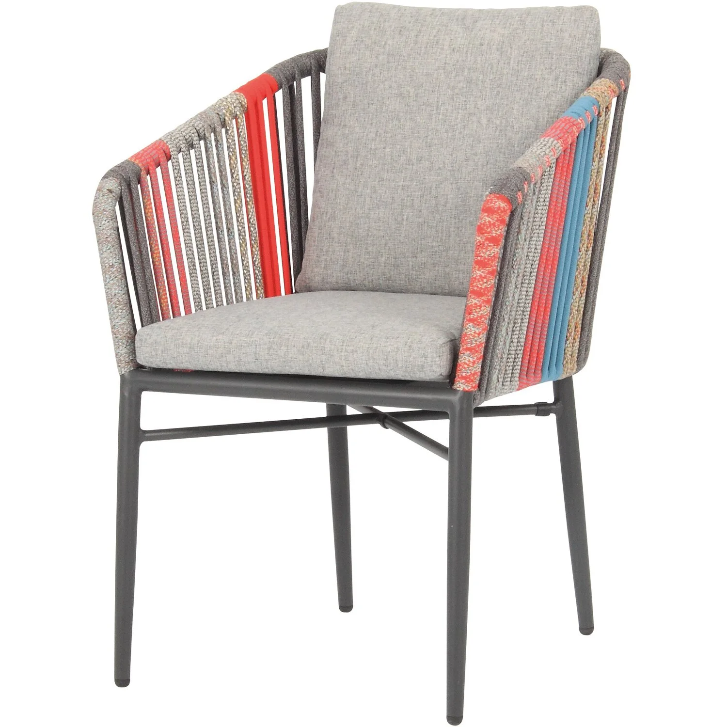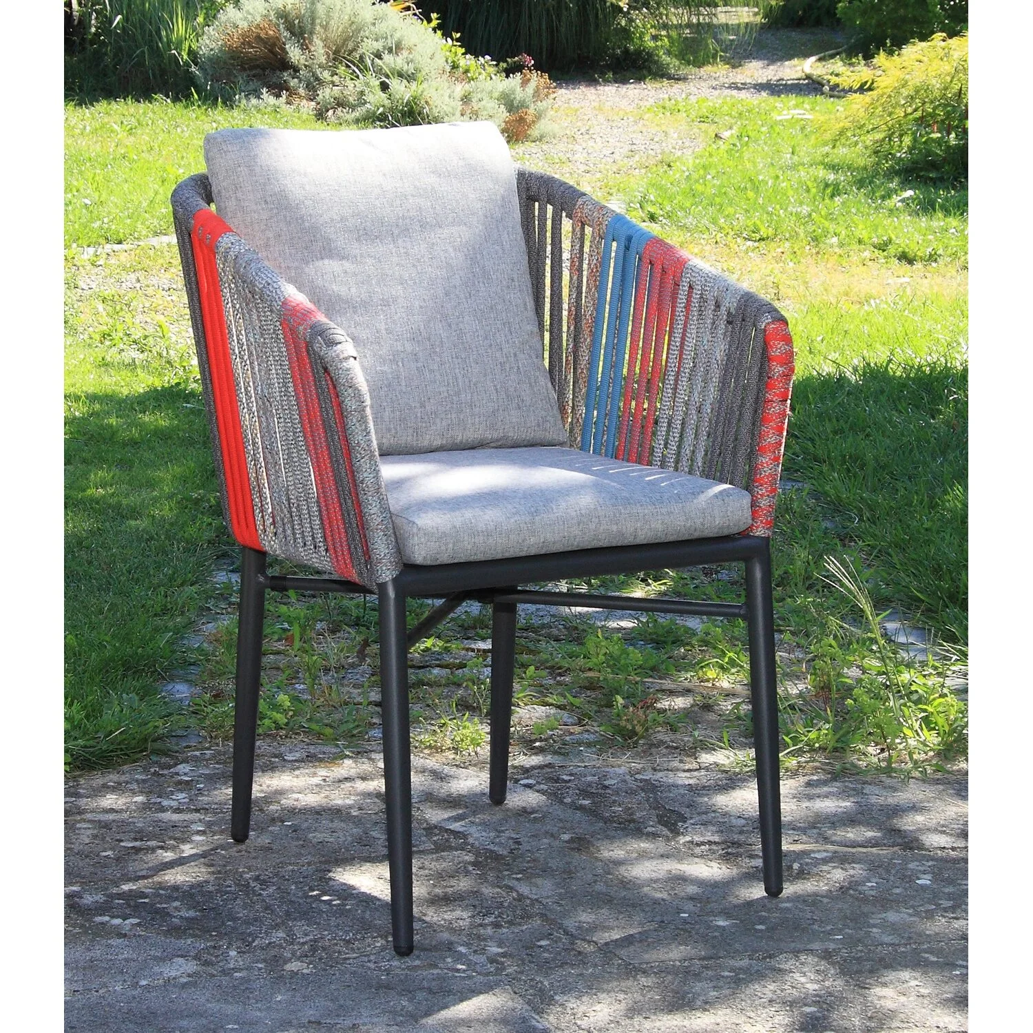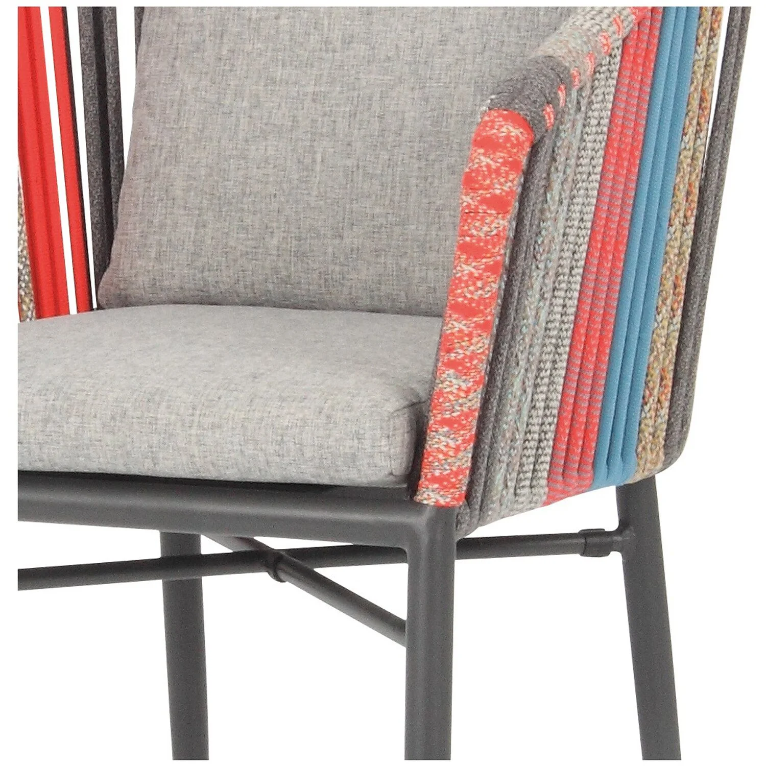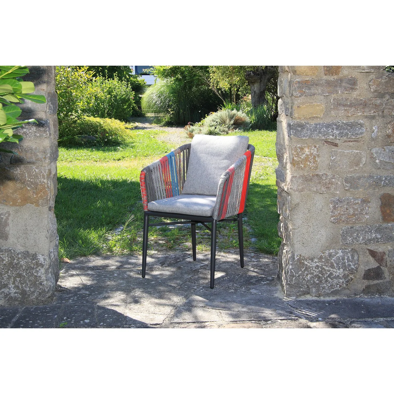 Der Acamp Stapelsessel Manhattan Color besteht aus einem robustem Aluminiumgestell. Die Sitzschalen sind mit bunten Polyesterschnüren umflochten, welche den Sessel zu einem absoluten Hingucker machen. Die Sitz- und Rückenkissen sind aus hochwertigem Polyesterstoff gefertigt. Die Schaum- und Vliesfüllung der Kissen sorgt für einen angenehmen Sitzkomfort und kann mittels Reissverschluss entnommen werden.