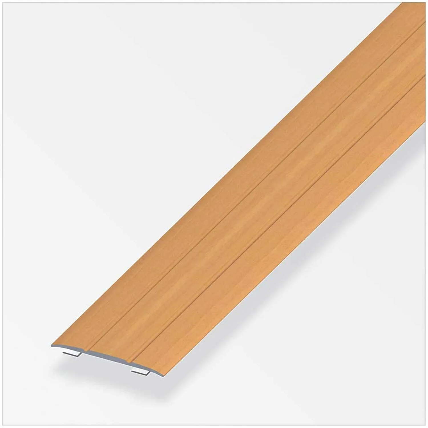 Das flache Übergangs-Profil mit Klebeschnüren aus pulverbeschichtetem Aluminium in Holzoptik überbrückt dezent Dehnfugen zwischen zwei gleich hohen Bodenbelägen dauerhaft. Es eignet sich ideal für die Anwendung direkt unter Eingangs- oder Zimmertüren. Unsaubere Schnittkanten werden verdeckt und notwendige Dehnfugen werden eingehalten. Einfachste Montage geschieht durch aufclipsen.