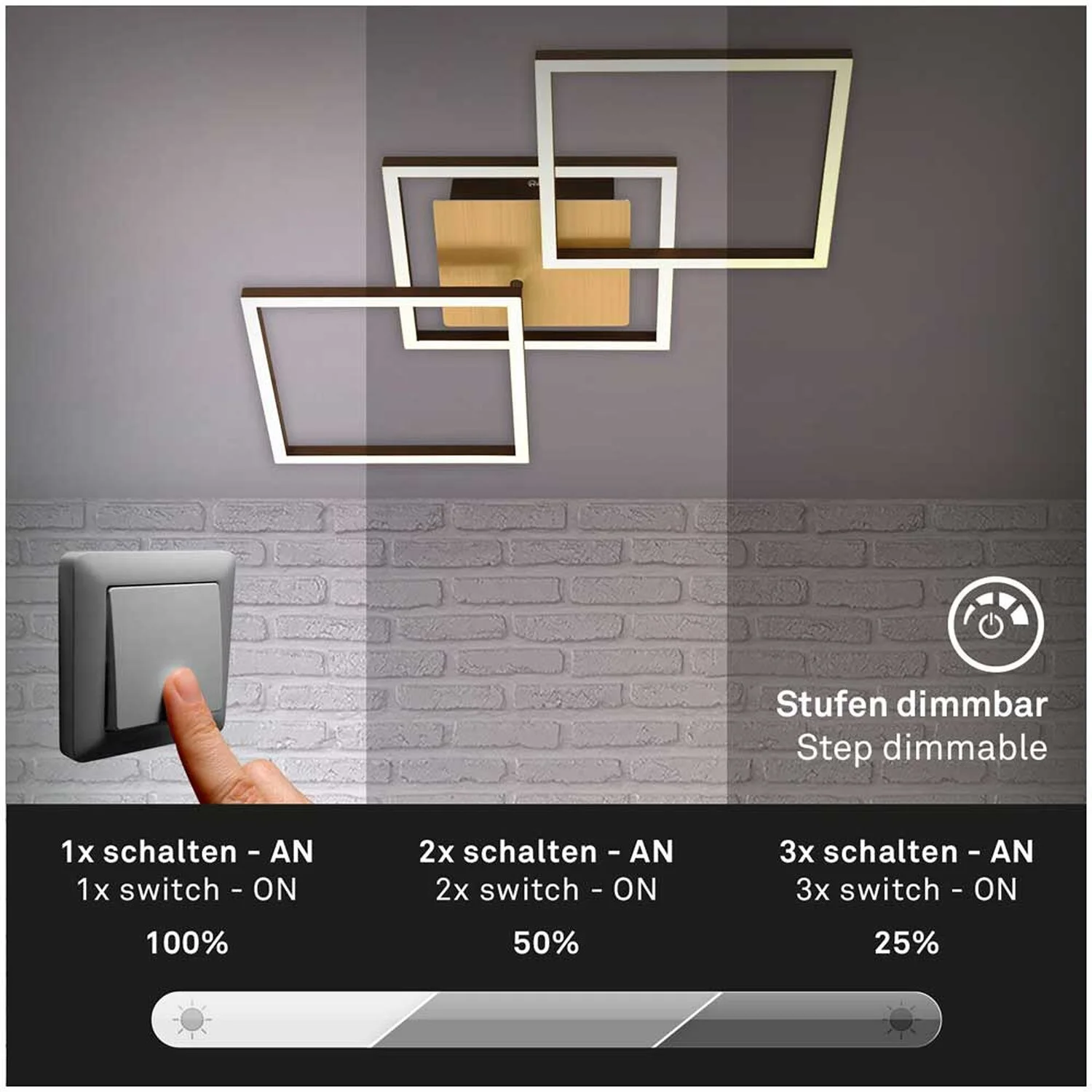 | Dimmbarkeit Art: | Dimmbar über Schalter |