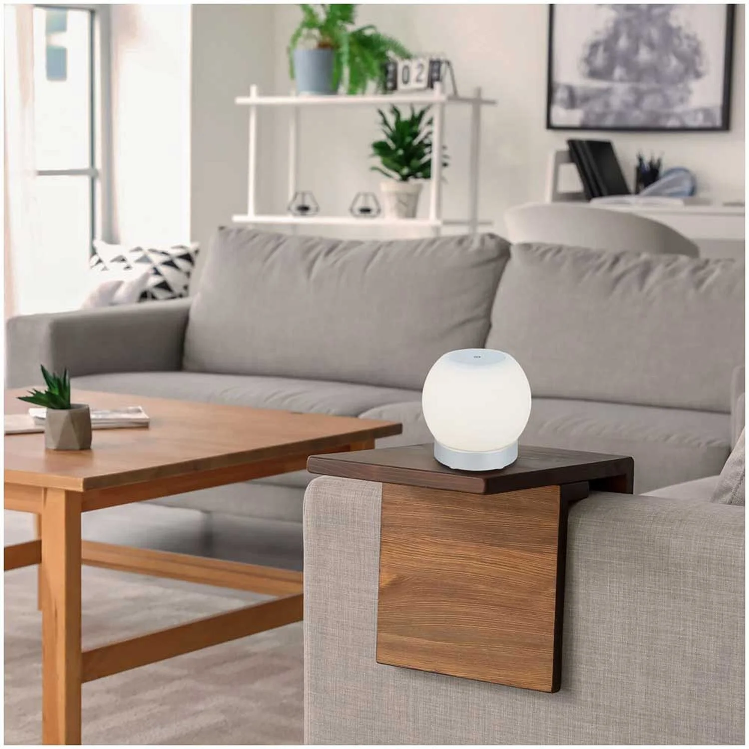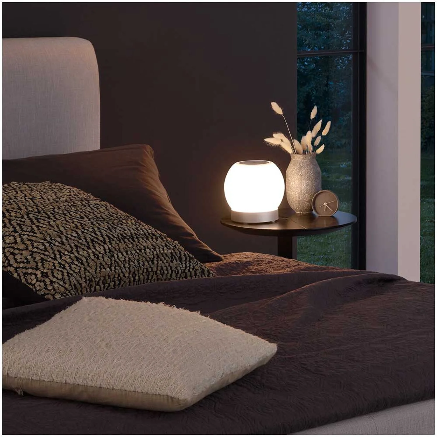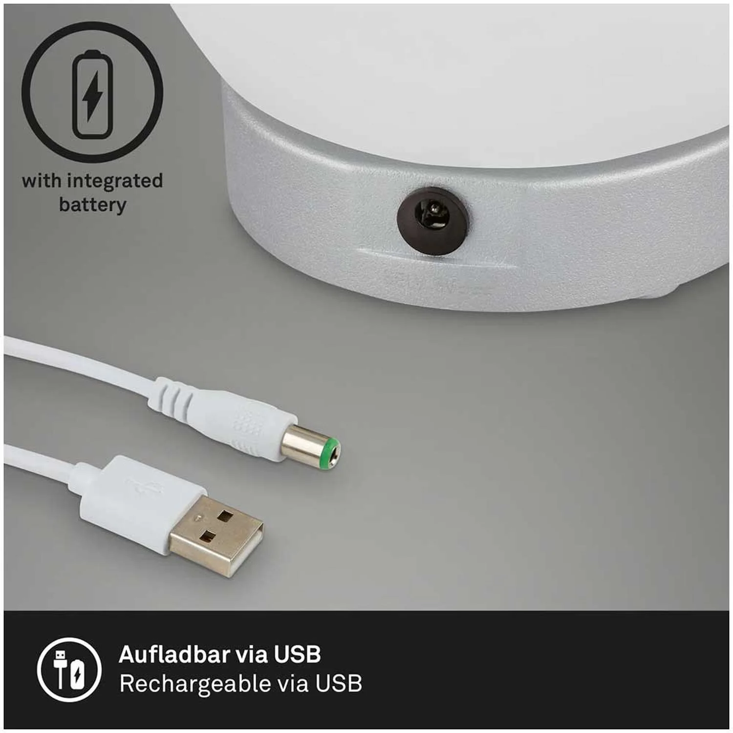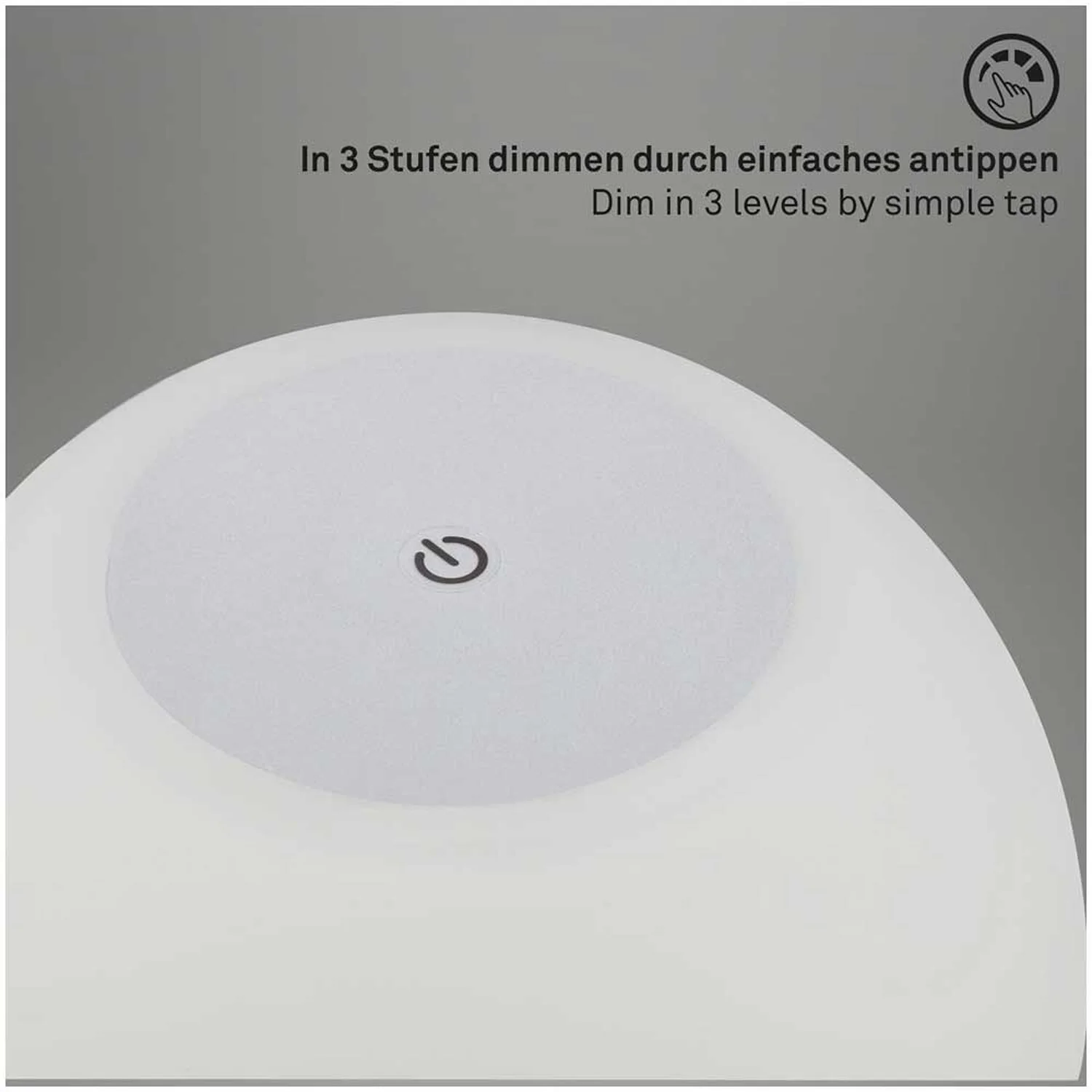 Die Akku-Tischleuchte Poka hat einen weissen Glasschirm, der wunderbar mit seinem chrom-matten Standsockel harmoniert. Durch den Akkubetrieb kann sie flexibel und vielseitig eingesetzt werden. Ob im Wohnzimmer, auf der Fensterbank, als Tischdeko, auf der Terasse oder sogar beim Camping, sie ist ein echter Wegbegleiter. Ihr eingebautes LED-Modul erstrahlt mit 3 W und 330 lm. Via Touchschalter ist die Leuchte in drei Stufen dimmbar und kann darüber auch ein- und ausgeschaltet werden. Ihr warmweisses Licht (3’000 K) bietet eine schöne gemütliche Lichtatmosphäre. Aufladbar ist die Leuchte über USB und wird inklusive USB-Kabel (2 m) geliefert. Die Leuchte hat einen Durchmesser von 160 mm und eine Höhe von 150 mm.