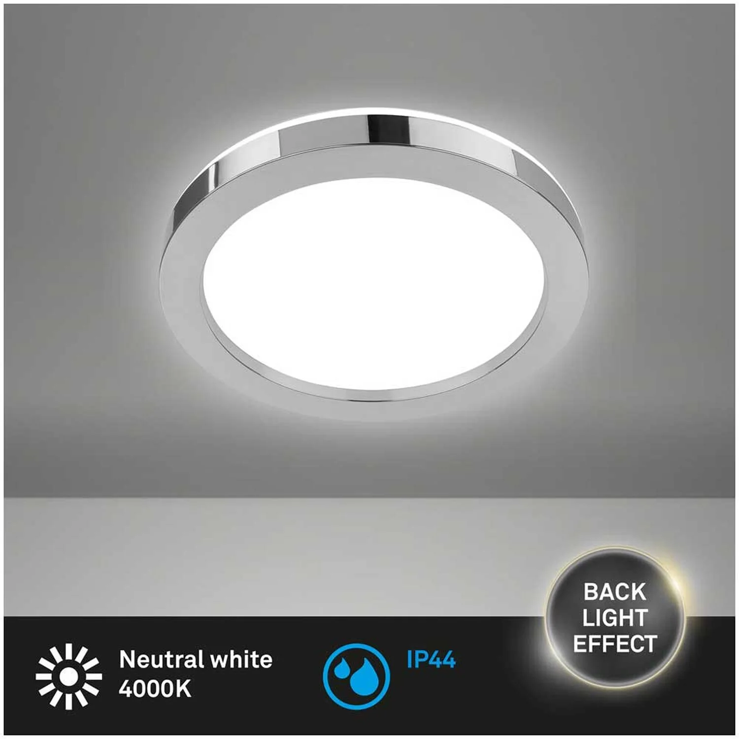 Die Badleuchte der Serie Badrum, gefertigt aus weissem Kunststoff und Metall, bietet Ihnen durch ihr neutralweisses Licht (4’000 K) eine optimale Ausleuchtung in Ihrem Badezimmer. Ein besonderes Highlight der Leuchte ist der Backlighteffekt. Die LED-Platine der Leuchte hat 18 W und eine Lichtleistung von 2’000 lm. Durch den Schutzfaktor IP44 kann die Wand- und Deckenleuchte problemlos in der Nähe von Waschbecken oder Dusche angebracht werden, da sie spritzwassergeschützt ist. Die Leuchte hat einen Durchmesser von 300 mm und eine Höhe von 60 mm.