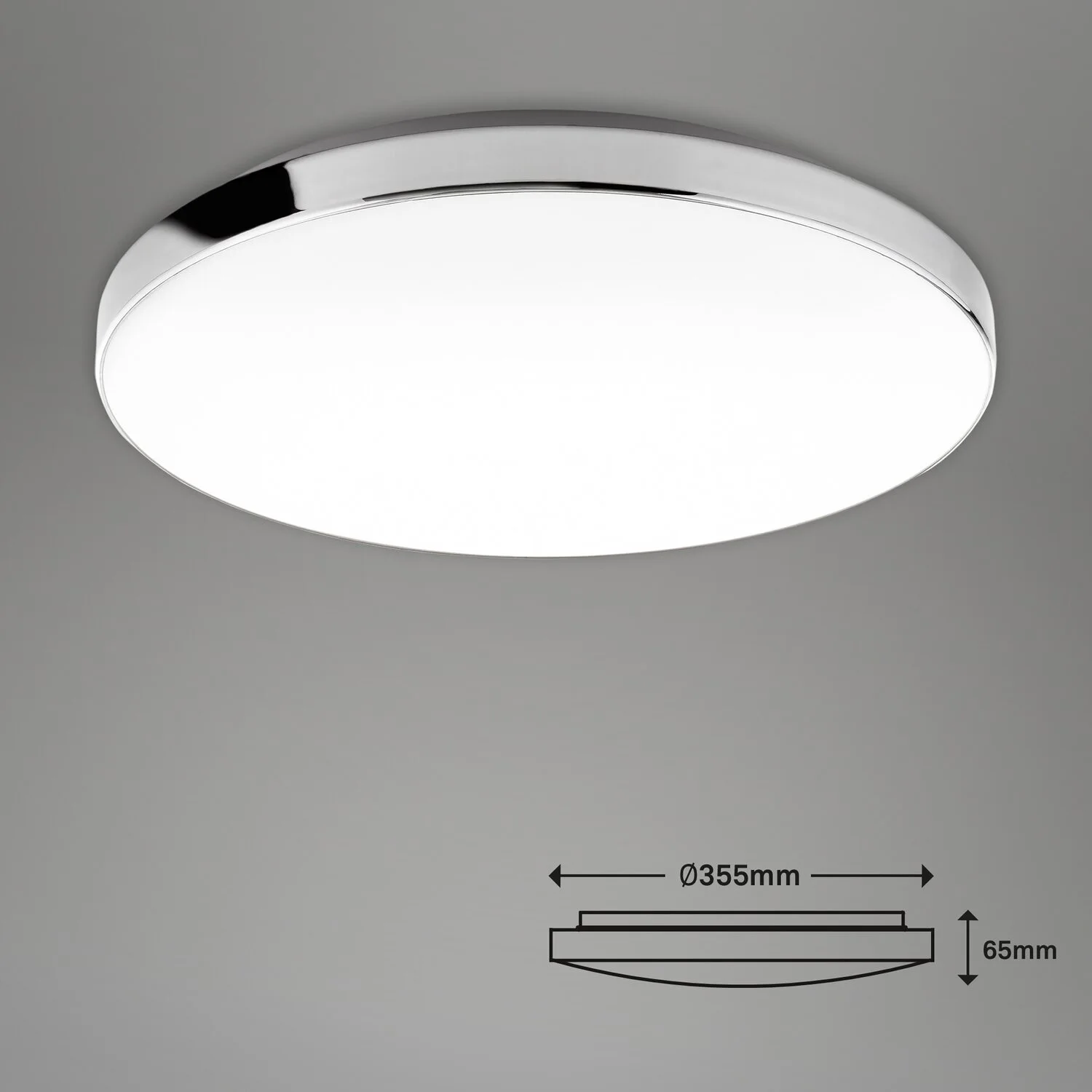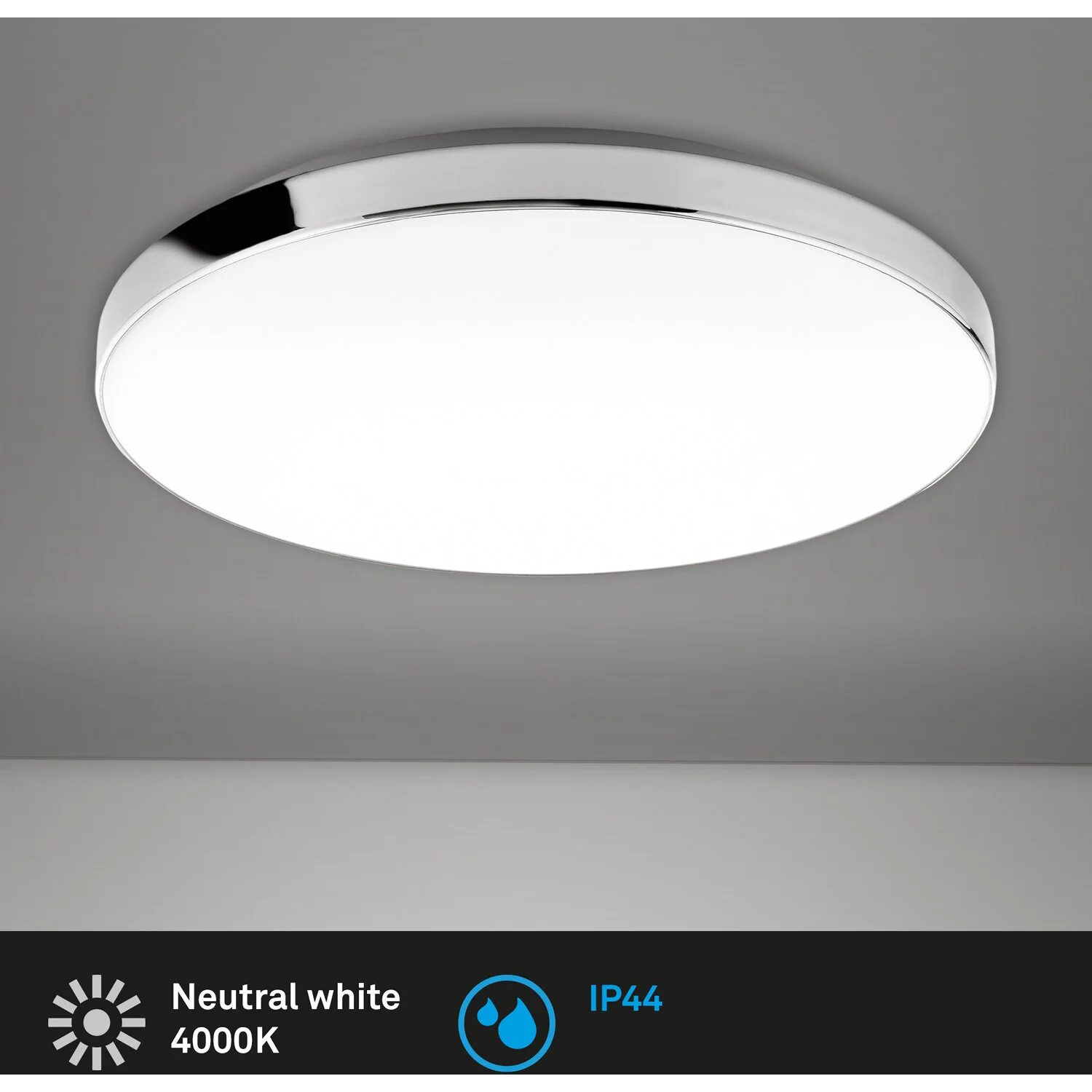 Die Weisse Brilo LED-Deckenleuchte aus der Serie Malbona bietet ein schlichtes Design, dass sich den Raumverhältnissen anpasst. Durch ihren chromfarbenen Rand setzt sie einen optischen Akzent, der sich in jedem Badezimmer gut macht. Mit 18 W und einer Lichtleistung von 1’700 lm versorgt sie auch grössere Räume mit genügend Licht. Dank der Schutzklasse IP44 bietet die Leuchte vielfältige Einsatzmöglichkeiten, da sie spritzwassergeschützt ist und somit auch problemlos in die Nähe von Dusche und Waschbecken montiert werden kann.