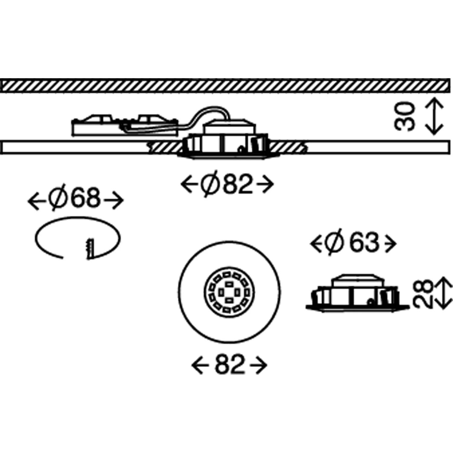 Bei dem LED Einbaustrahler aus der Serie Attach handelt es sich um festverbaute LED Module die ein warmweisses Licht erzeugen. Durch das schlichte weiss und die runde Form kann die Einbauleuchte geradezu überall montiert werden. Damit ein optimales Lichtverhältnis entsteht, kann der Strahler geschwenkt und gedimmt werden.