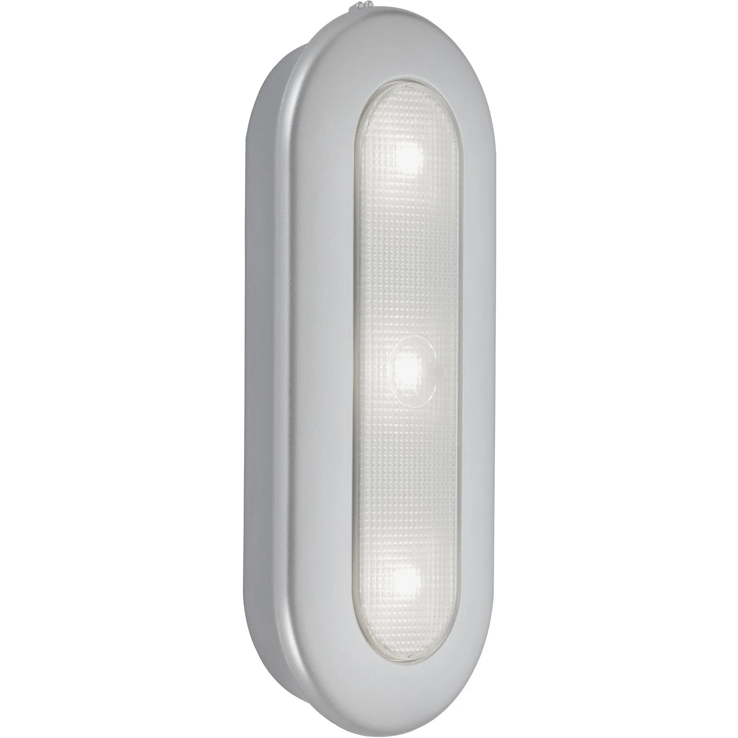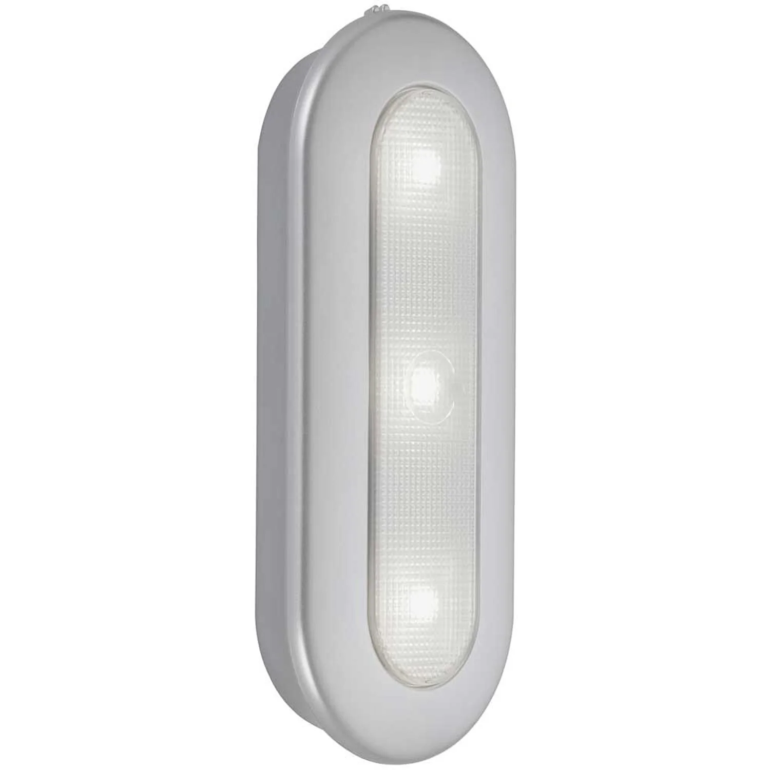 Das silberfarbene LED-Funktionslicht Push Light Row verfügt über ein Leuchtmittel mit 0,4 W, 68 lm und 6’500 K. Die Leuchte ist batteriebetrieben. Durch Eine Push-Bewegung auf die Leuchte kann diese an- und ausgeschaltet werden. An der Seite der Leuchte befindet sich ein Schalter, mit dem die Timerfunktion eingestellt werden kann: dauerhaft ein – 1 min – 5 min – 15 min. Im Lieferumfang sind die benötigten Batterien sowie Montagematerial enthalten.