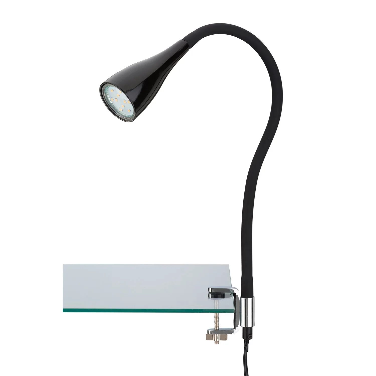 Die moderne LED-Klemmleuchte aus der Serie Elasti hat einen flexiblen Strahler mit einem LED-Leuchtmittel mit der Fassung GU10 und lässt sich optimal Ihren Lichtbedürfnissen entsprechend ausrichten. Die Leuchte verfügt über einen Schnurschalter. Der Einsatzbereich kann individuell gewählt werden, beispielsweise an Arbeitsplätzen oder Schreibtischen. Die LEDs zeichnen sich durch eine besonders lange Lebensdauer, warmweisses Licht und eine hohe Farbwiedergabe aus.