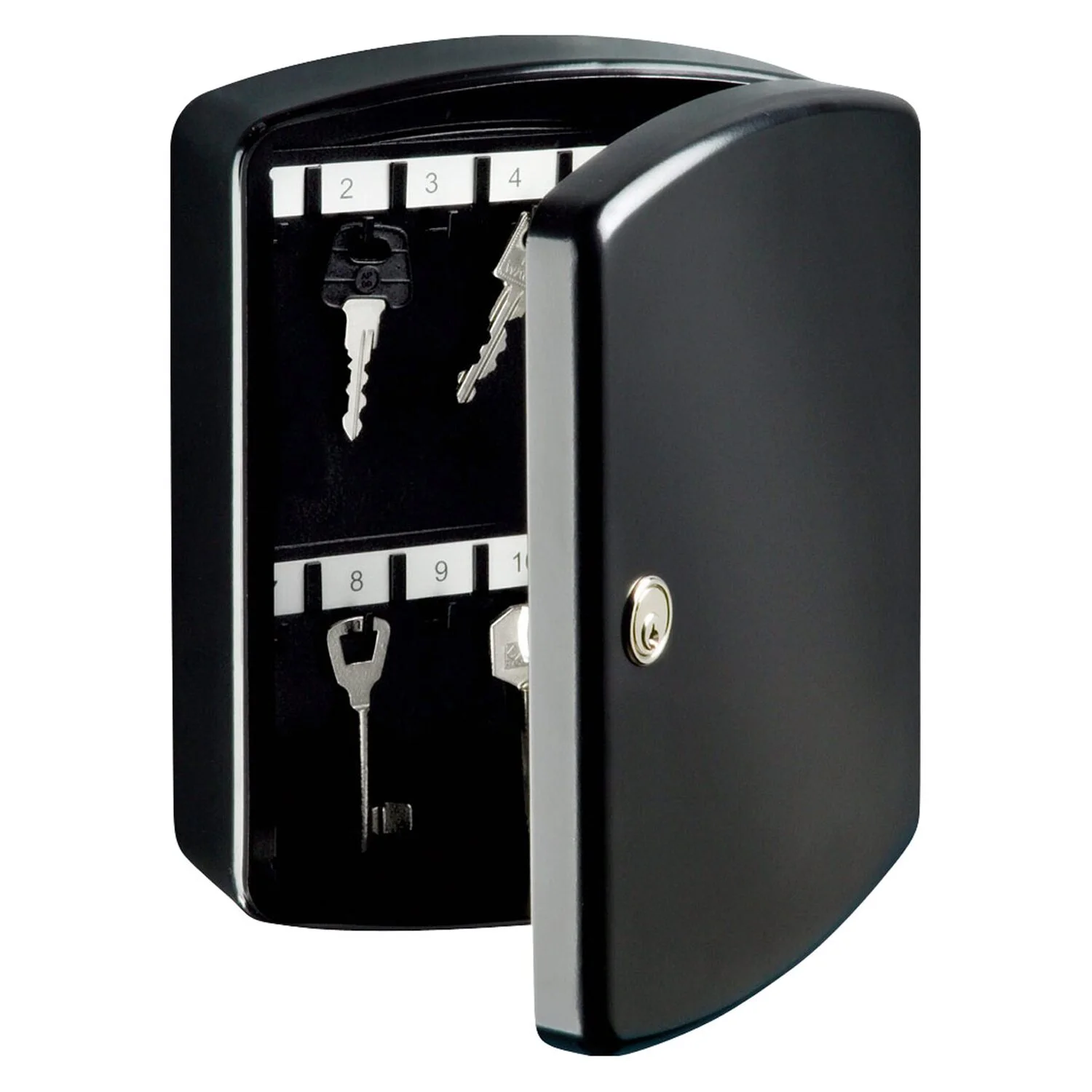 Die Burg-Wächter Schlüssel-Box KB 15 S mit 15 Haken H 202 x B 157 x T 75 mm Schwarz ist eine preiswerte Schlüsselbox in optisch ansprechender, abgerundeter Form. Der Schlüsselschrank ist hochwertig verarbeitet.