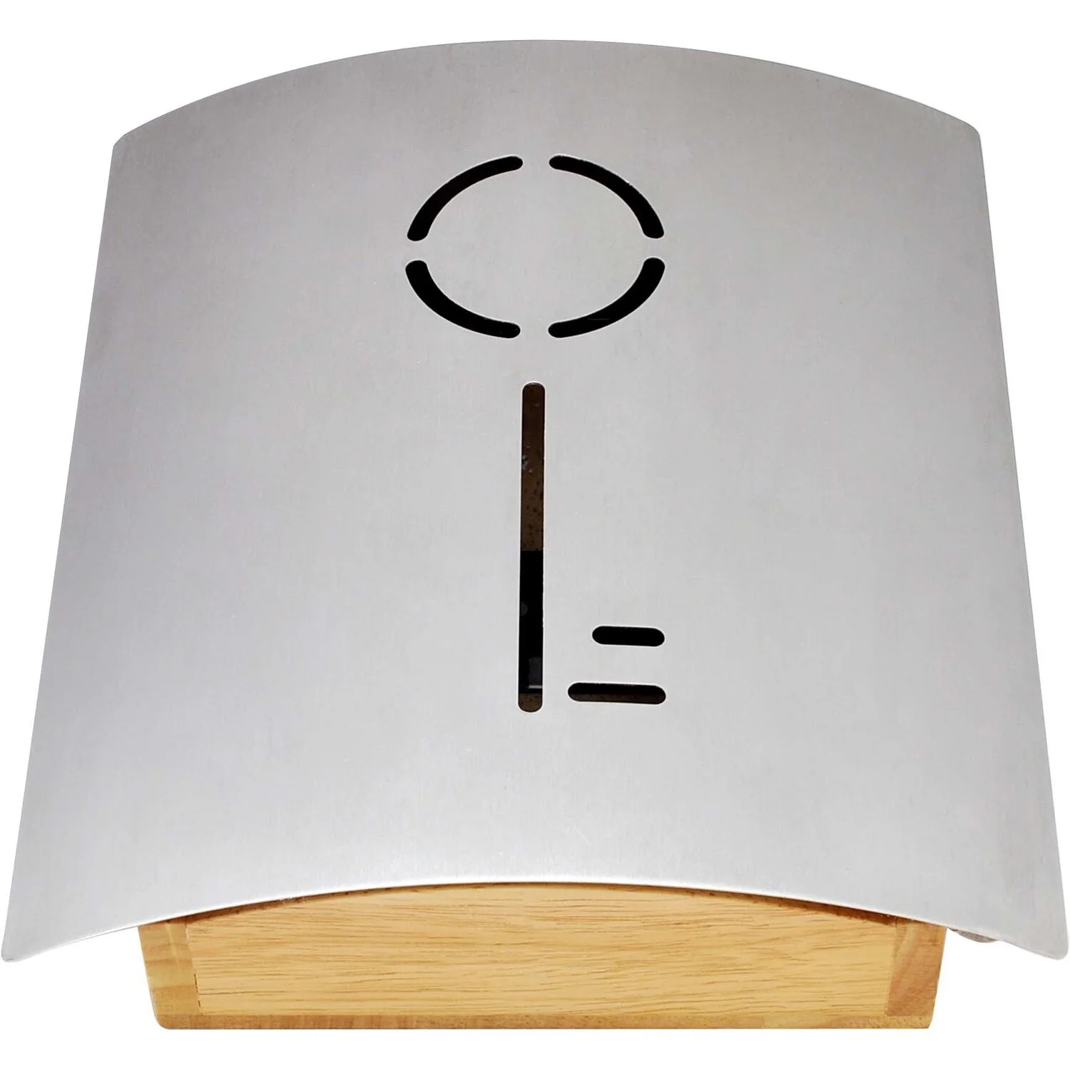 Im CMI Schlüsselkasten mit Holzkörper und einer Türe aus gebürstetem Edelstahl können an 10 Haken übersichtlich Schlüssel aufbewahrt werden. Die Türe mit dem ausgestanztem Motiv eines Schlüssels hat einen praktischen Magnetverschluss. Der Schlüsselkasten hat die Masse (HxB x T) 24,5 cm x 21,5 cm x 5,5 cm.