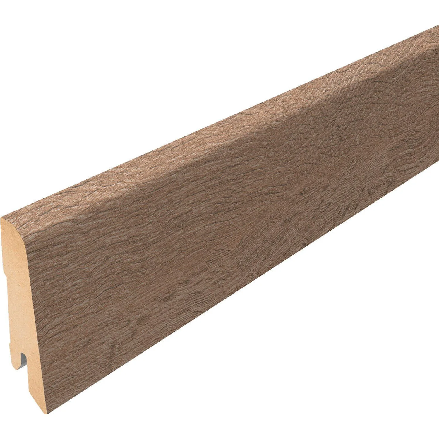 Ob Egger Laminat, Comfort Korkboden oder Designboden, die Sockelleisten in dekorgleicher Farbe wie der Fussboden sorgen für einen sauberen Wandabschluss und ein harmonisches Verlegebild. Die robusten Leisten bestehen aus MDF-Material und sind mit einer wasserabweisenden Dekorfolie versehen, welche gleichzeitig vor Beschädigungen und Verschmutzung schützt. Montieren lassen sich die Fussleisten einfach und sauber mit den separat erhältlichen Egger Clipstar Befestigungsclips. Das geht schnell, schützt die Tapete vor Abrissen durch Kleber, verhindert unschöne Nägel oder Schrauben in der Fussleiste und ermöglicht zudem eine versteckte Kabelverlegung hinter der Leiste. Hierdurch entsteht schöne und saubere Optik, die durch die passenden Formteile noch abgerundet wird. Für jede Fussleiste bietet Egger im Formteile- und Ecken-Sortiment eine Innenecke, Aussenecke, Endstück und Verbindungsstück im zur Bodenleiste passenden Dekorfarbton an. Damit sind keine aufwändigen Gehrungsschnitte mehr notwendig.