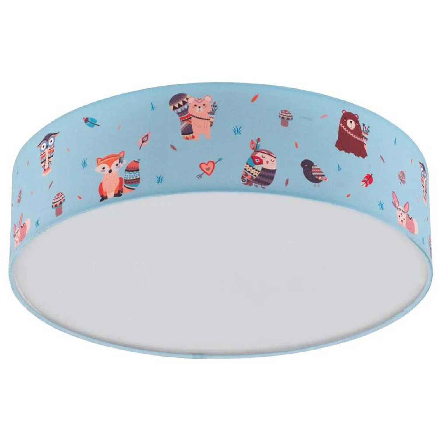 Die Deckenleuchte Ruffo ist aus einem runden Textil-Schirm gefertigt und bietet dank des weissen Diffusors ein homogenes und blendfreies Lichtbild. Der Leuchtenschirm mit hellblauem Hintergrund überzeugt mit farbenfrohen Tier-Motiven. Die Deckenleuchte im verspielten Design eignet sich hervorragend für das Kinderzimmer – egal, ob für Mädchen oder Jungs.