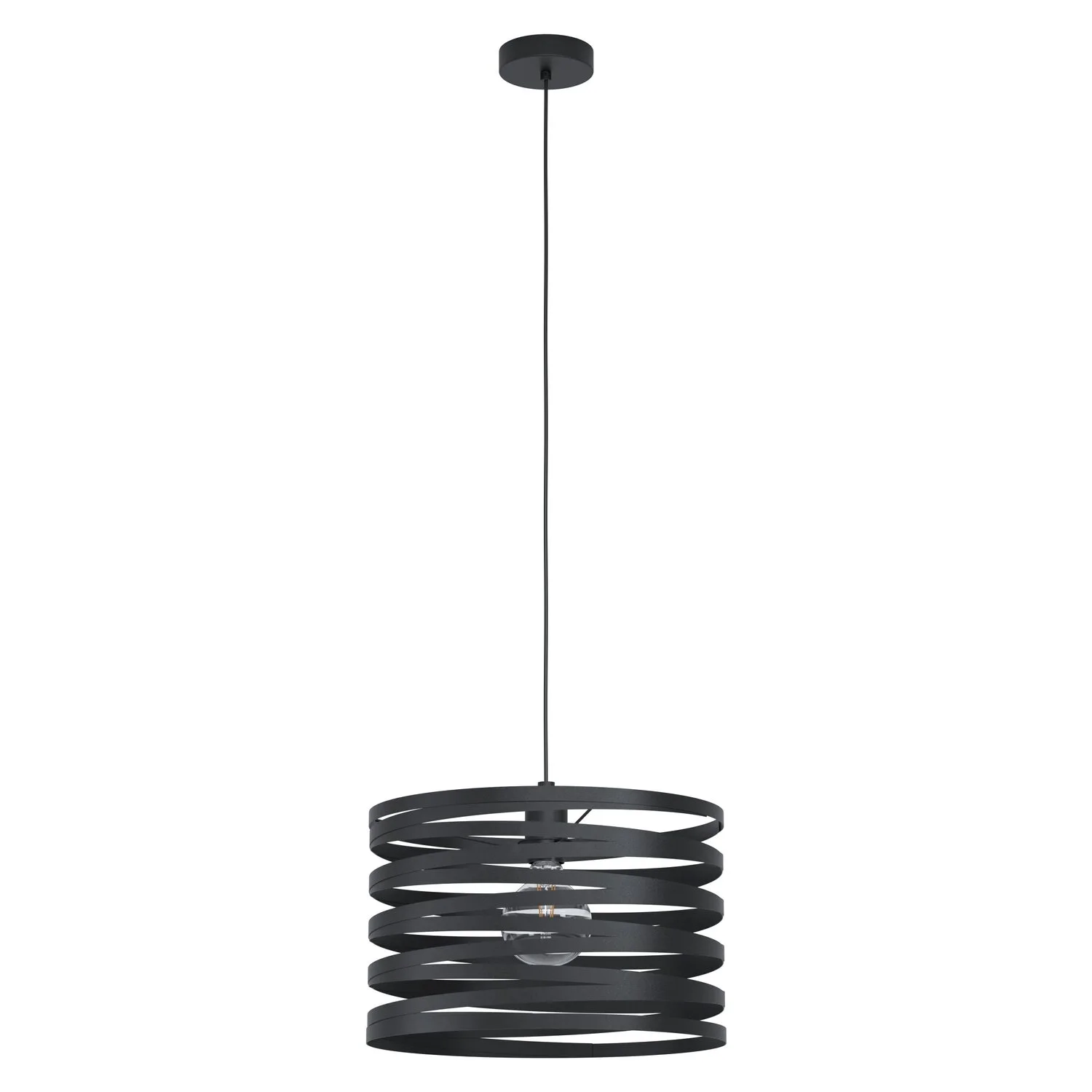 Die Pendelleuchte Cremella ist aus einem runden Lampenschirm aus schwarzem Metall gefertigt. Durch die spiralförmigen Metallbänder entstehen faszinierende Licht- und Schattenspiele, sobald die Leuchte eingeschaltet ist. Die Hängeleuchte fügt sich nahtlos in die Trends wie Vintage und Industrial ein. Sie bietet ein modernes Design für jeden Raum – egal ob in der Küche, im Wohnzimmer oder im Esszimmer über dem Esstisch. Das abgebildete Filament-Leuchtmittel ist nicht im Lieferumfang enthalten. Geeignet ist die Leuchte für jedes Leuchtmittel mit E27-Sockel.