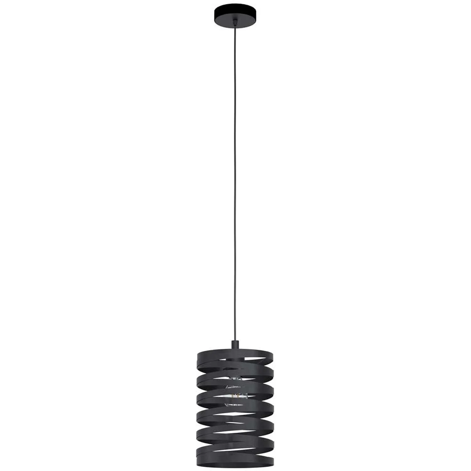 Die Pendelleuchte Cremella ist aus einem zylinderförmigen Lampenschirm aus schwarzem Metall gefertigt. Durch die spiralförmigen Metallbänder entstehen faszinierende Licht- und Schattenspiele, sobald die Leuchte eingeschaltet ist. Die Hängeleuchte fügt sich nahtlos in die Trends wie Vintage und Industrial ein. Sie bietet ein modernes Design für jeden Raum – egal ob in der Küche, im Wohnzimmer oder im Esszimmer über dem Esstisch. Das abgebildete Filament-Leuchtmittel ist nicht im Lieferumfang enthalten. Geeignet ist die Leuchte für jedes Leuchtmittel mit E27-Sockel.