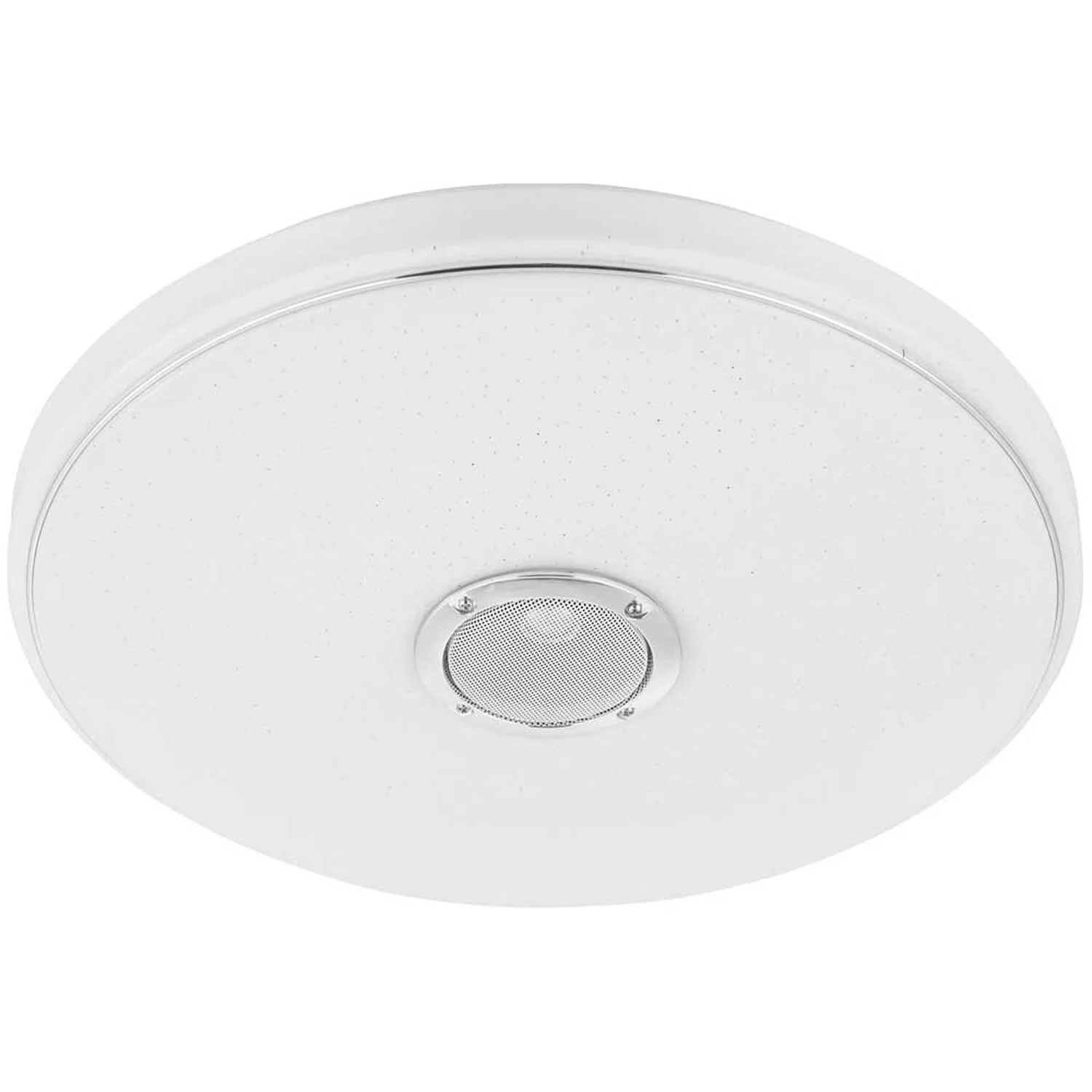 Die LED-Deckenleuchte Milazzo ist spritzwassergeschützt (IP44) und ermöglicht einen bedenkenlosen Einsatz im Badezimmer. Sie ist aus weissem Kunststoff mit einer LED-Abdeckung gefertigt, die mit einem Kristall-Effekt versehen ist. Bei eingeschalteter Leuchte und Bewegung entsteht ein funkelndes Erscheinungsbild. Über den integrierten Bluetooth-Lautsprecher und durch das Verbinden mit dem Smartphone kann zu jeder Zeit Ihre Lieblingsmusik abgespielt werden. Die integrierten LEDs spenden angenehmes Licht. Zudem ermöglicht die mitgelieferte Fernbedienung das Dimmen, das Einstellen von RGB-Lichtfarben und das Wechseln der Farbtemperatur zwischen Warmweiss, Neutralweiss und Kaltweiss sowie das Einstellen eines Nachtlichts. Die Deckenleuchte fügt sich nahtlos in moderne Einrichtungen ein und bietet eine aussergewöhnliche Beleuchtung für jeden Raum – egal, ob im Bad, in der Küche, im Wohnzimmer oder Schlafzimmer, Flur.