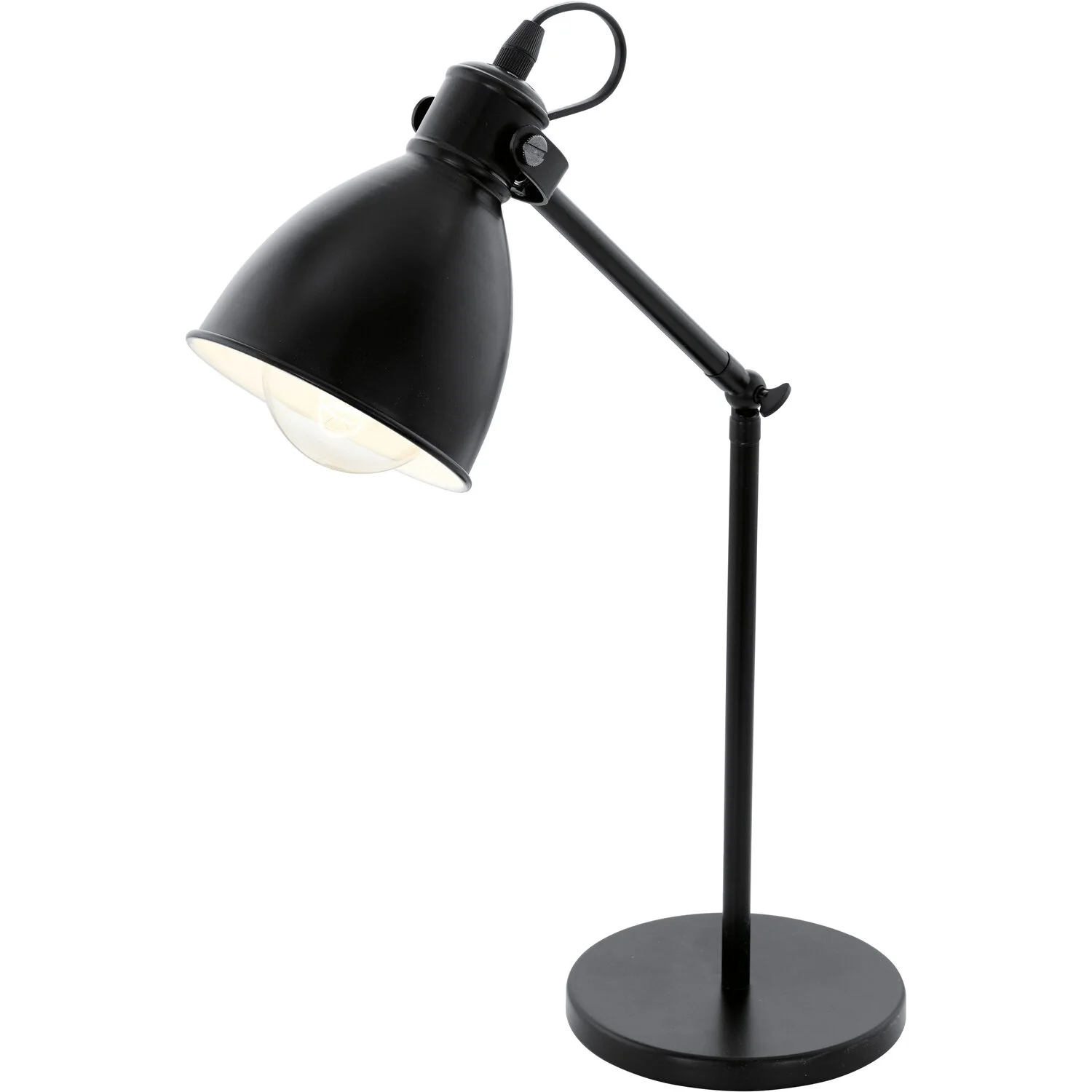 Die Eglo Tischleuchte Priddy besticht mit ihrem Vintage-Design aus schwarzem Stahl. Die Leuchte ist mit einer E27-Fassung für maximal 40 W ausgelegt, welche es Ihnen erlaubt das geeignete Leuchtmittel selbst auszuwählen.