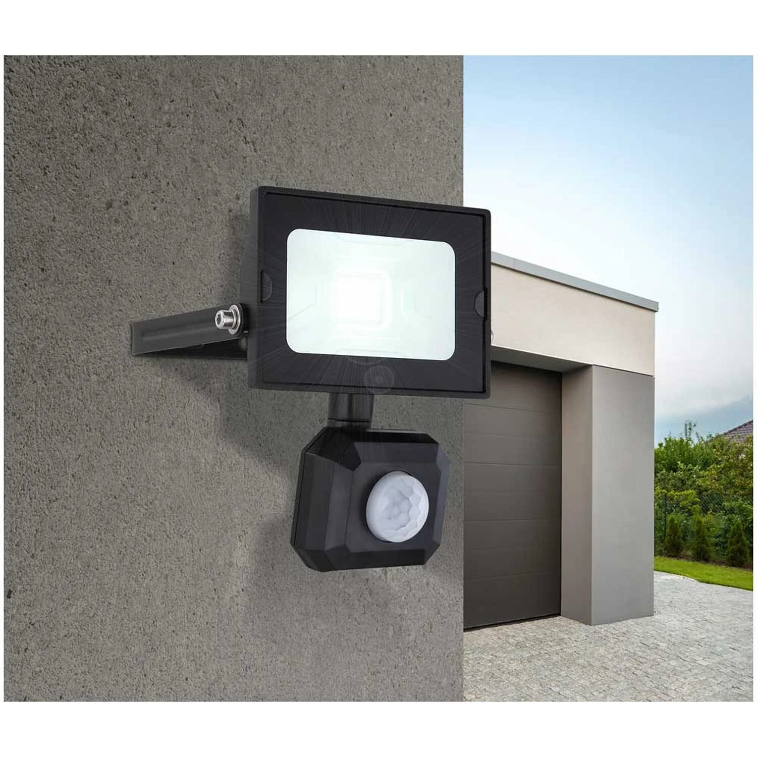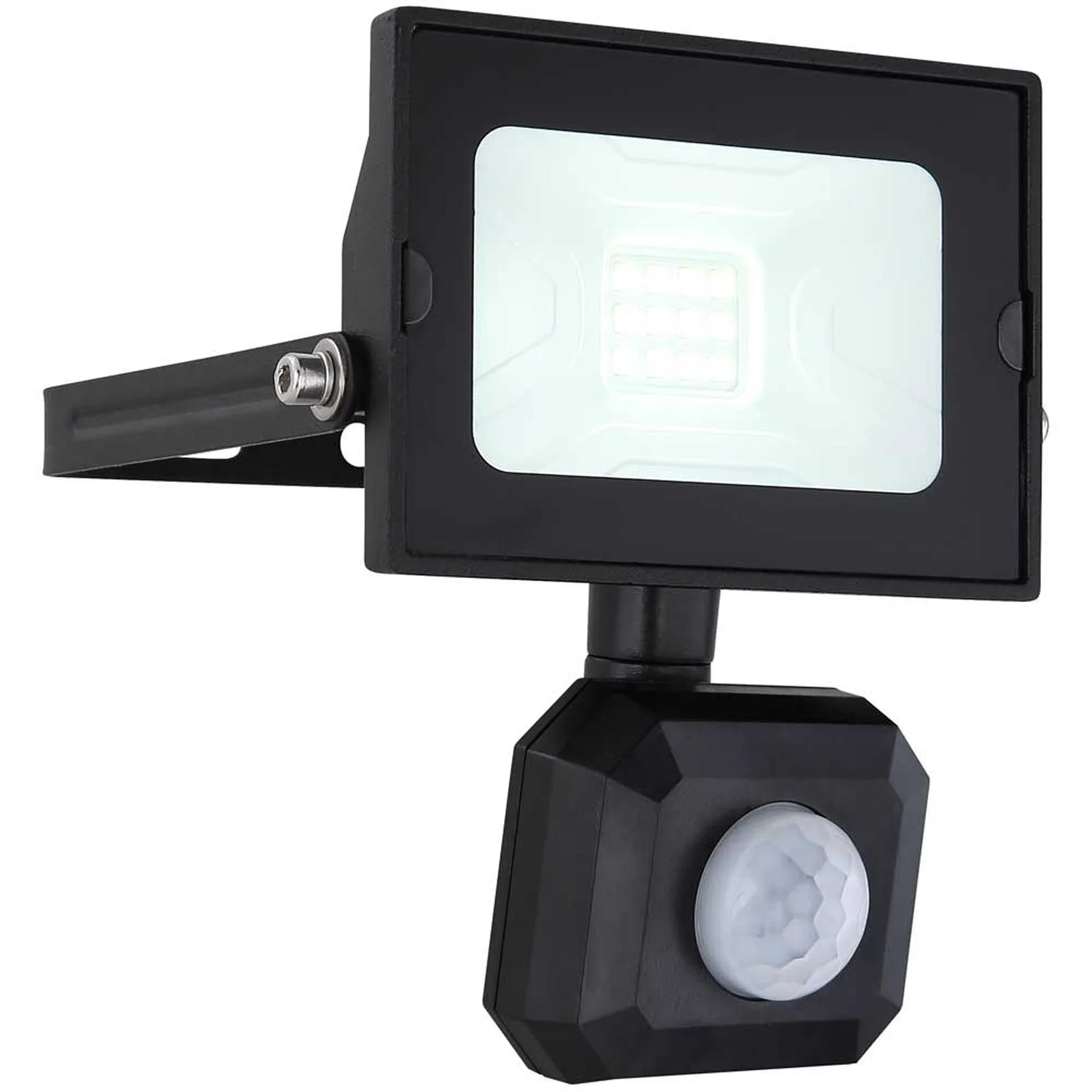 Dieser schwarze schwenkbare Aussenstrahler aus Aluminium-Druckguss kann auch als Baustrahler genutzt werden. Durch seinen eingebauten Bewegungsmelder (110°), kommt er hauptsächlich in Einfahrten und Eingangsbereichen zum Einsatz. Aufgrund seiner Schutzart IP44, ist er für den Aussenbereich prädestiniert. Er liefert mit seinen 10 W und 750 lm ein starkes kaltweisses Licht (6’000 K).