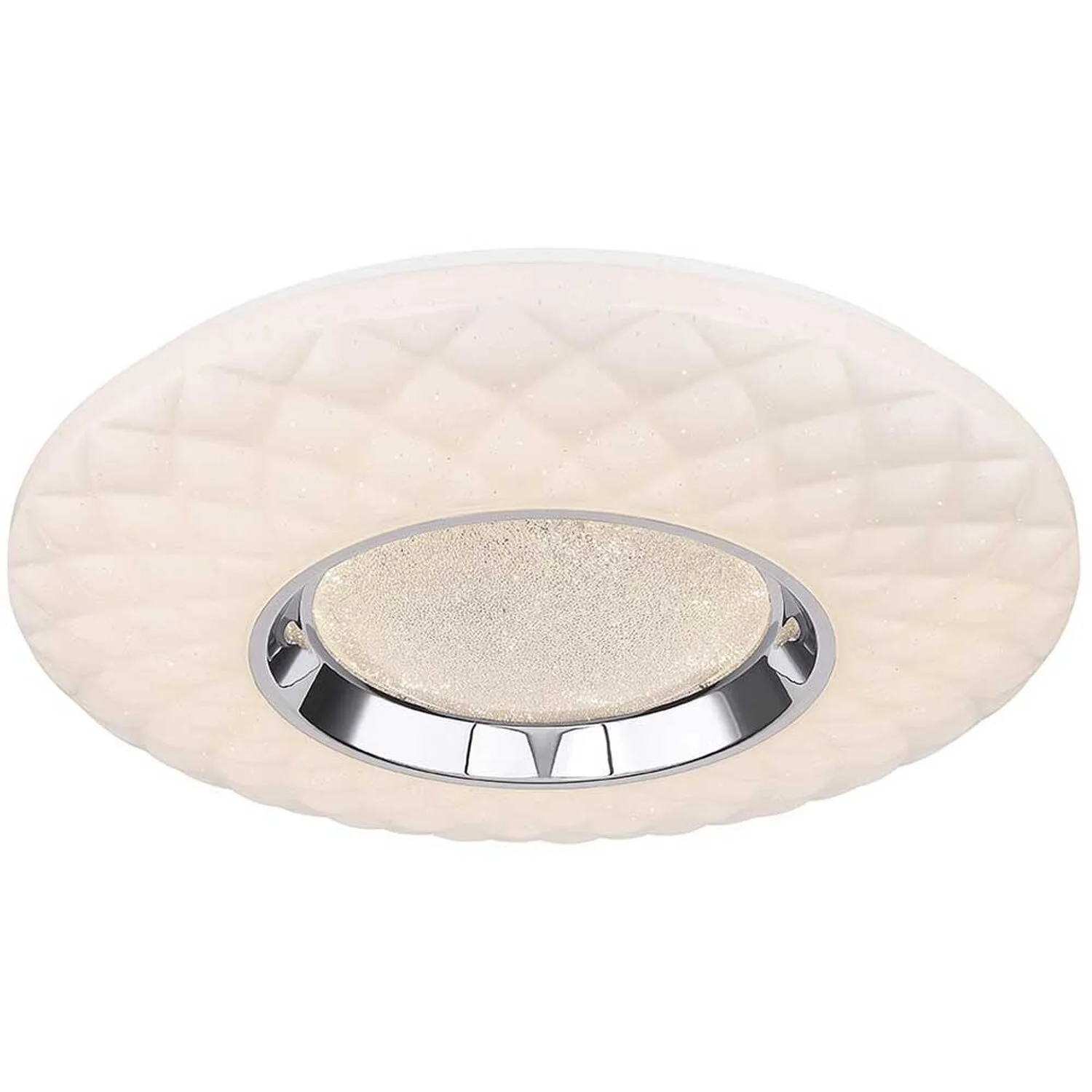 Die exklusive Deckenleuchte Magnifique aus opal-weissem Acryl mit Sparkle-Dekor punktet mit Leistung und Funktionalität. Durch die klaren Glaskristalle in der Mitte wird dem Raum ein besonderer Glanz verliehen. Mittels der inkludierten Fernbedienung kann die Lichtfarbe in mehreren Stufen zwischen angenehmen warmweissen 3’000 K und kaltweissen 6’000 K reguliert und fixiert werden. Die Leuchte kann nach Belieben gedimmt und der jeweiligen Situation angepasst werden. Zudem verfügt sie über eine Nachtlichtfunktion. Diese Smartlight-Leuchte lässt sich ausserdem mittels Tuya Smart App (Android TM/IOS) bedienen. Die Sprachsteuerung erfolgt unkompliziert mit Amazon Echo oder Google Home.