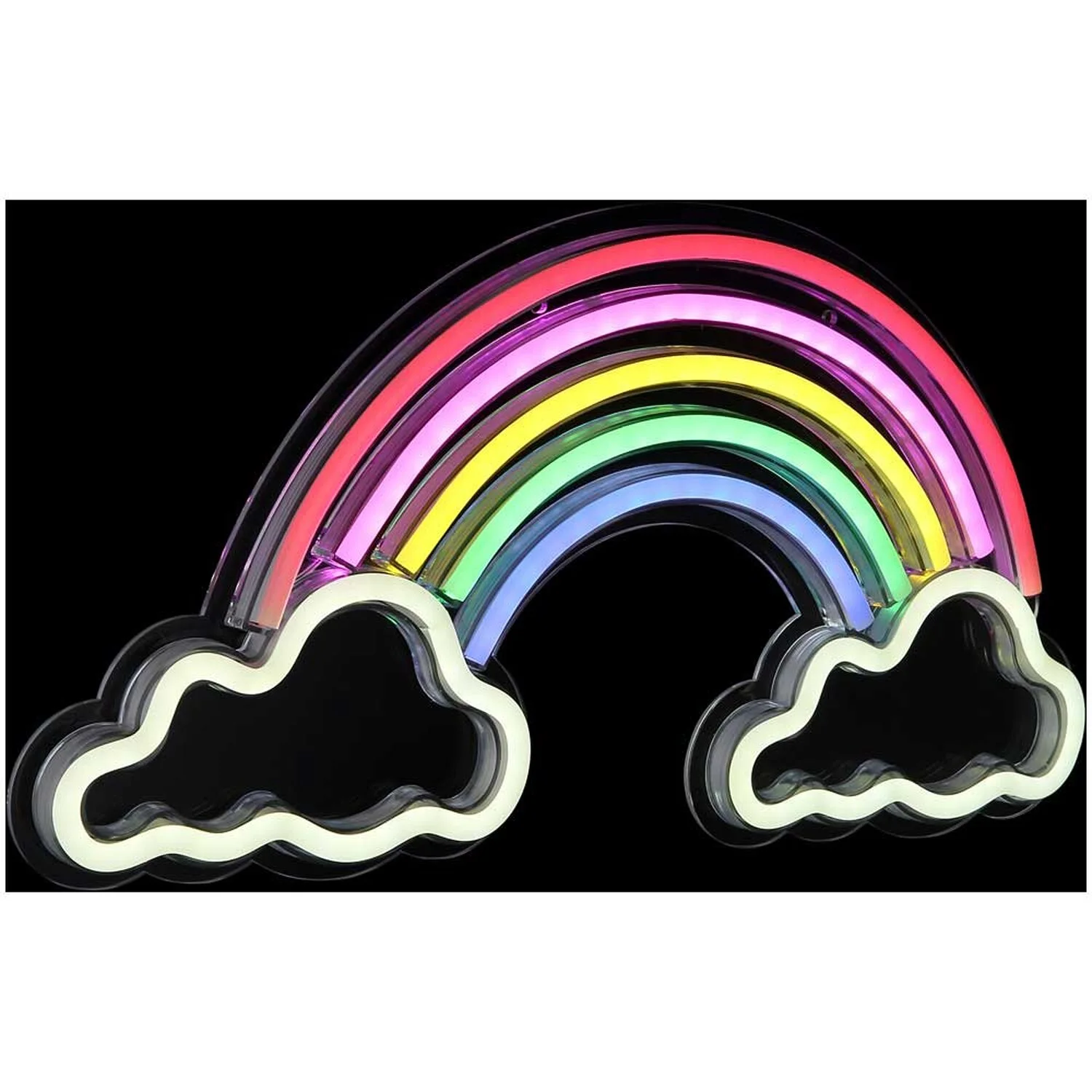 Diese farbenfrohe Dekoleuchte von Globo in Form eines Regenbogens auf zwei Wolken besteht aus klarem Kunststoff und überzeugt durch ein tolles Design. Sie ist mit zwei Ösen für die Wandmontage ausgestattet. Bedient wird die Leuchte über einen Wippschalter am 1,8 m langen USB-Kabel.