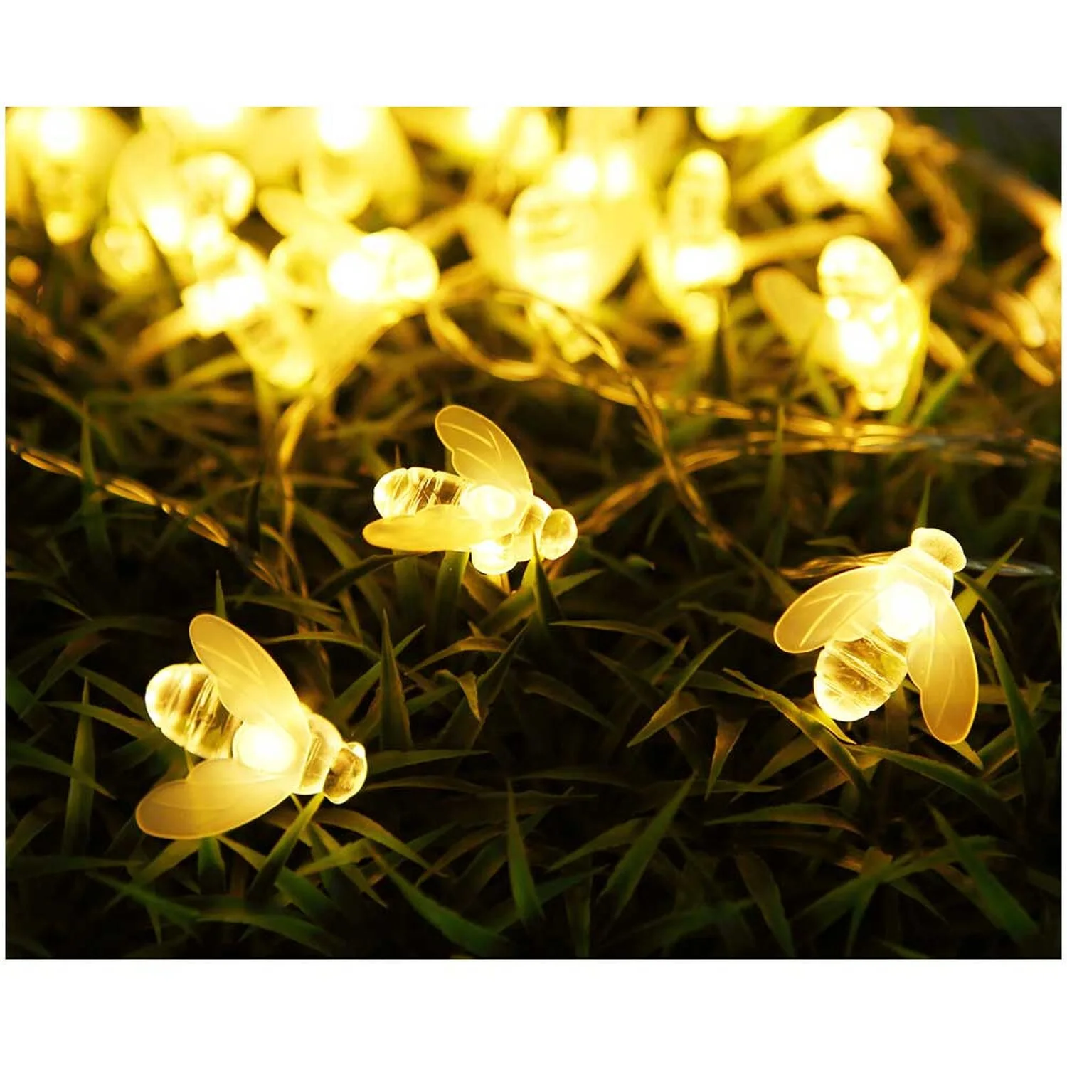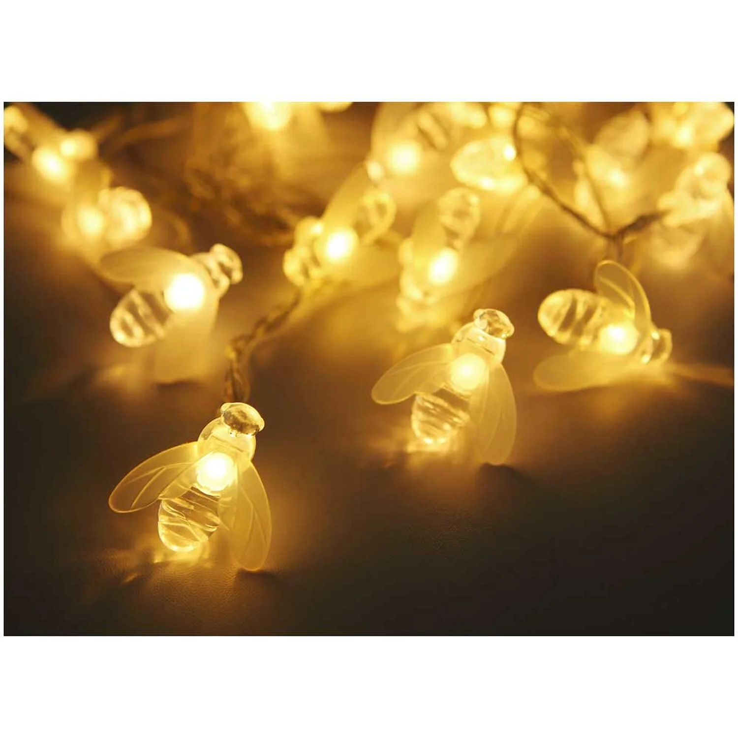 Diese Solarlichterkette von Globo mit 20 LED-Leuchtmitteln in Bienenoptik ist eine wunderschöne Ergänzung für Ihren Garten, Ihre Terrasse oder Ihren Balkon. Die LED-Leuchtmittel (Warmweiss, 2’400 K) werden durch die am Erdspiess befindlichen Solarzellen mit Energie versorgt. Inklusive des Kabels kommt die Solarlichterkette auf eine Gesamtlänge von 5,8 m. Dank IP44-Schutzgrad gegen Spritzwasser ist die Leuchte ideal für den Aussenbereich geeignet.