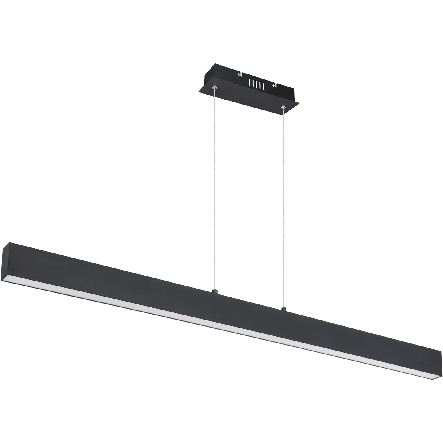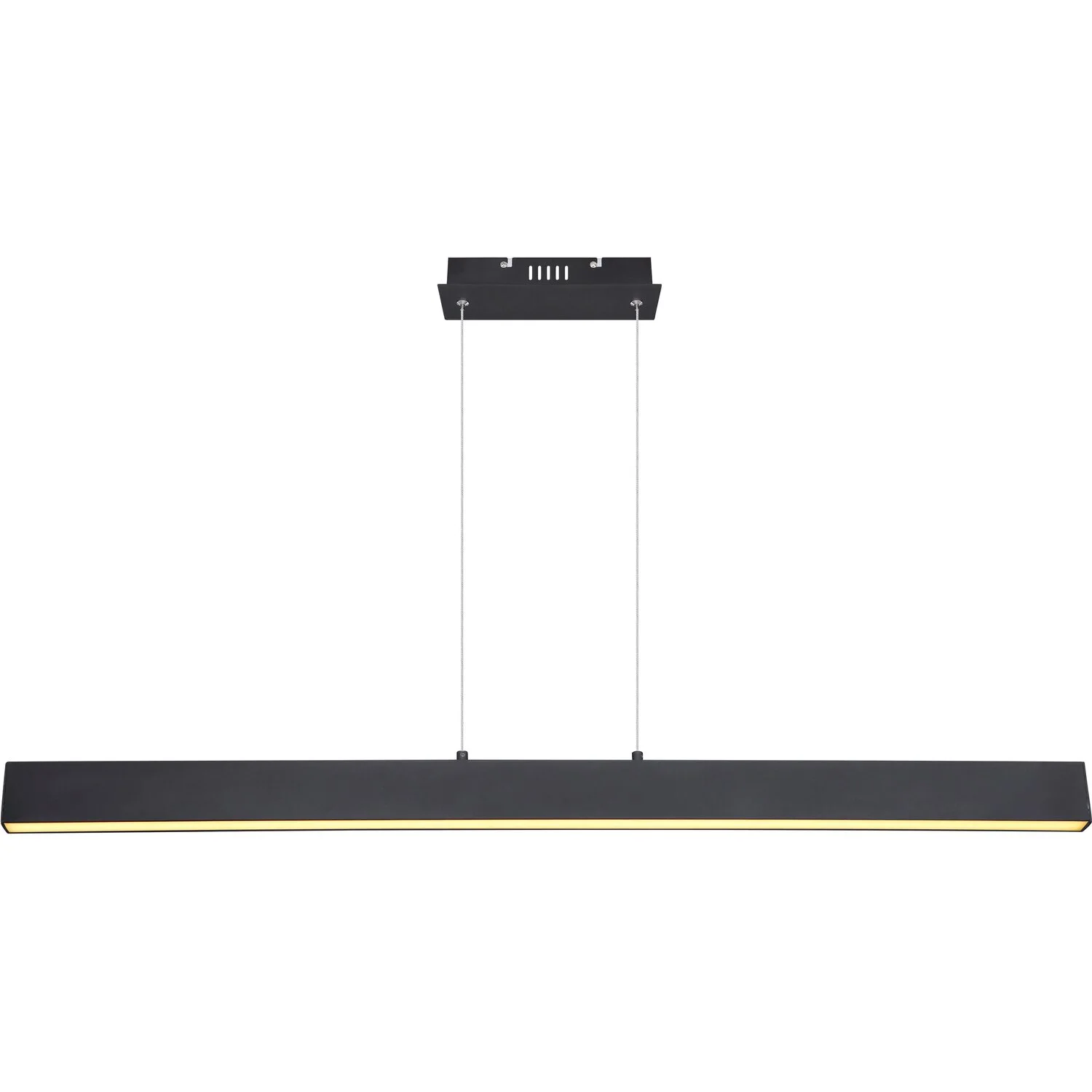 Die matt-schwarze Pendelleuchte aus Metall mit einem Schirm aus Kunststoff in Opalweiss taucht Ihren Wohn- oder Essbereich durch das inkludierte Leuchtmittel (3’000 K) in ein gemütliches, warmweisses Licht. Da die balkenförmige Pendelleuchte über den Wandschalter in drei Stufen dimmbar ist, können Sie die Raumatmosphäre nach Ihrem Empfinden anpassen. Die Pendelleuchte hat eine Memory-Funktion und merkt sich den letzten eingestellten Wert. Der 8 cm schmale Balken wird durch die Länge von 121 cm zum Blickfang über Ihrem Ess- oder Wohnzimmertisch.