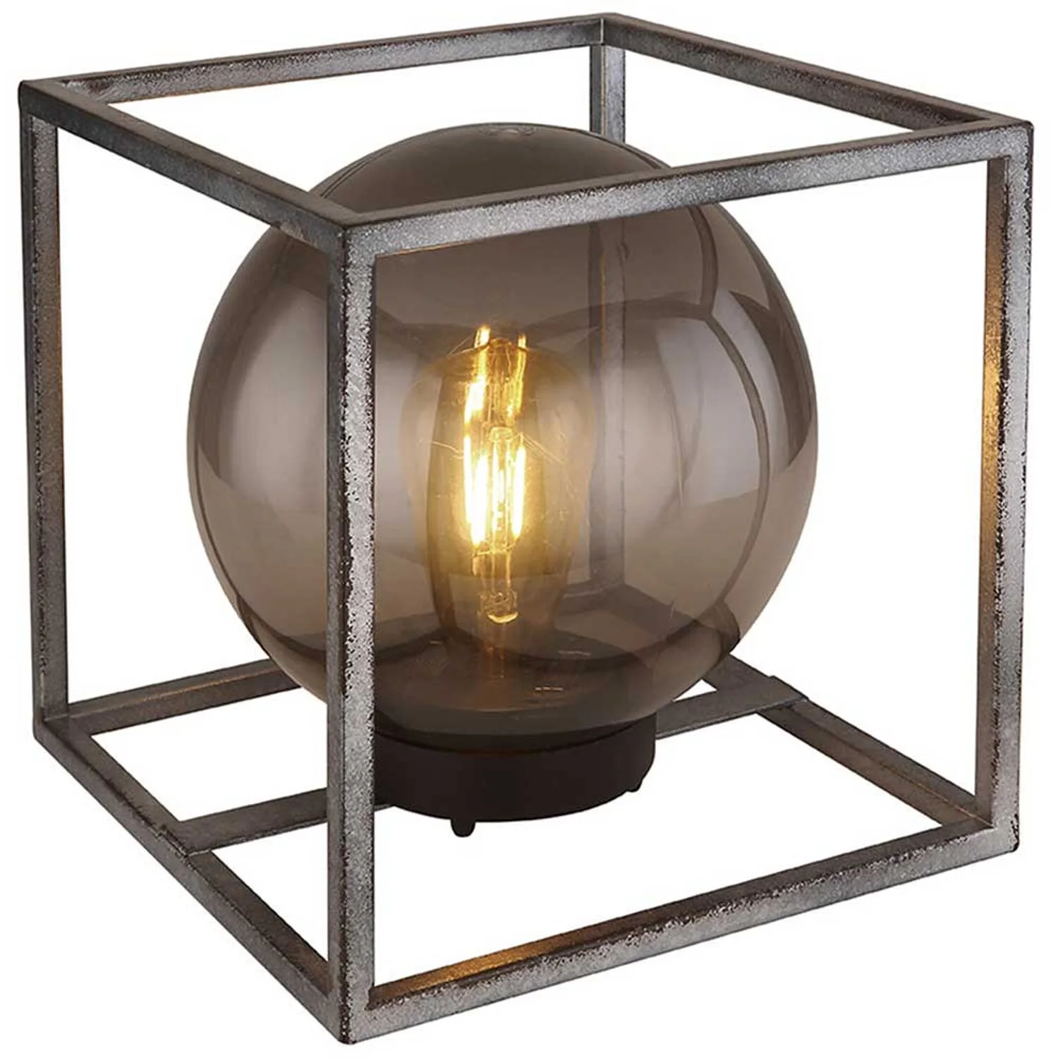 Mit dieser stylischen Leuchte in Würfelform setzen Sie tolle Akzente in Ihrem Garten oder auf Ihrer Terrasse. Im Inneren des Vintage-Metallgestells befindet sich eine graue Kugel in Rauchglasoptik mit einem aufladbaren LED-Leuchtmittel. Dank Schutzgrad IP44 ist diese Dekorationsleuchte bestens für den Aussenbereich geeignet.