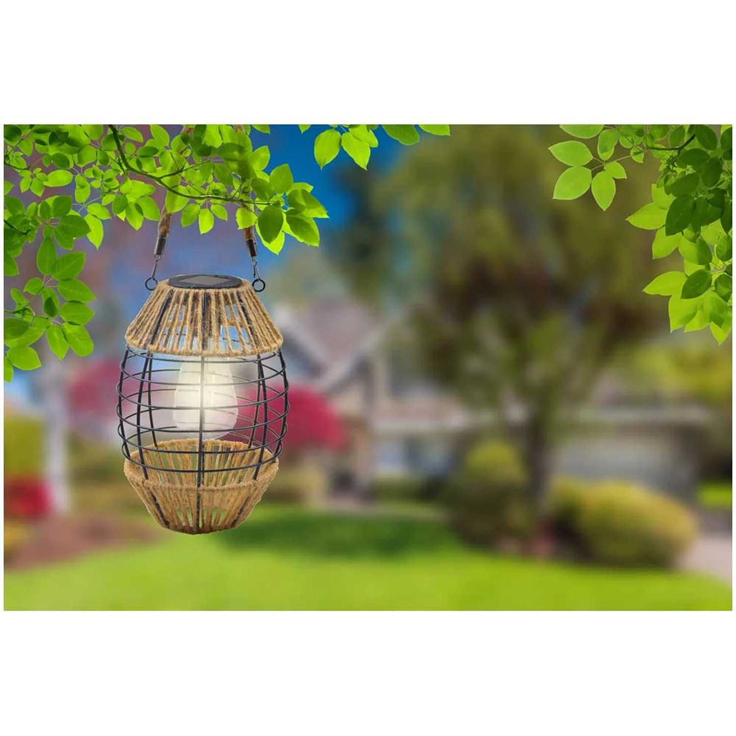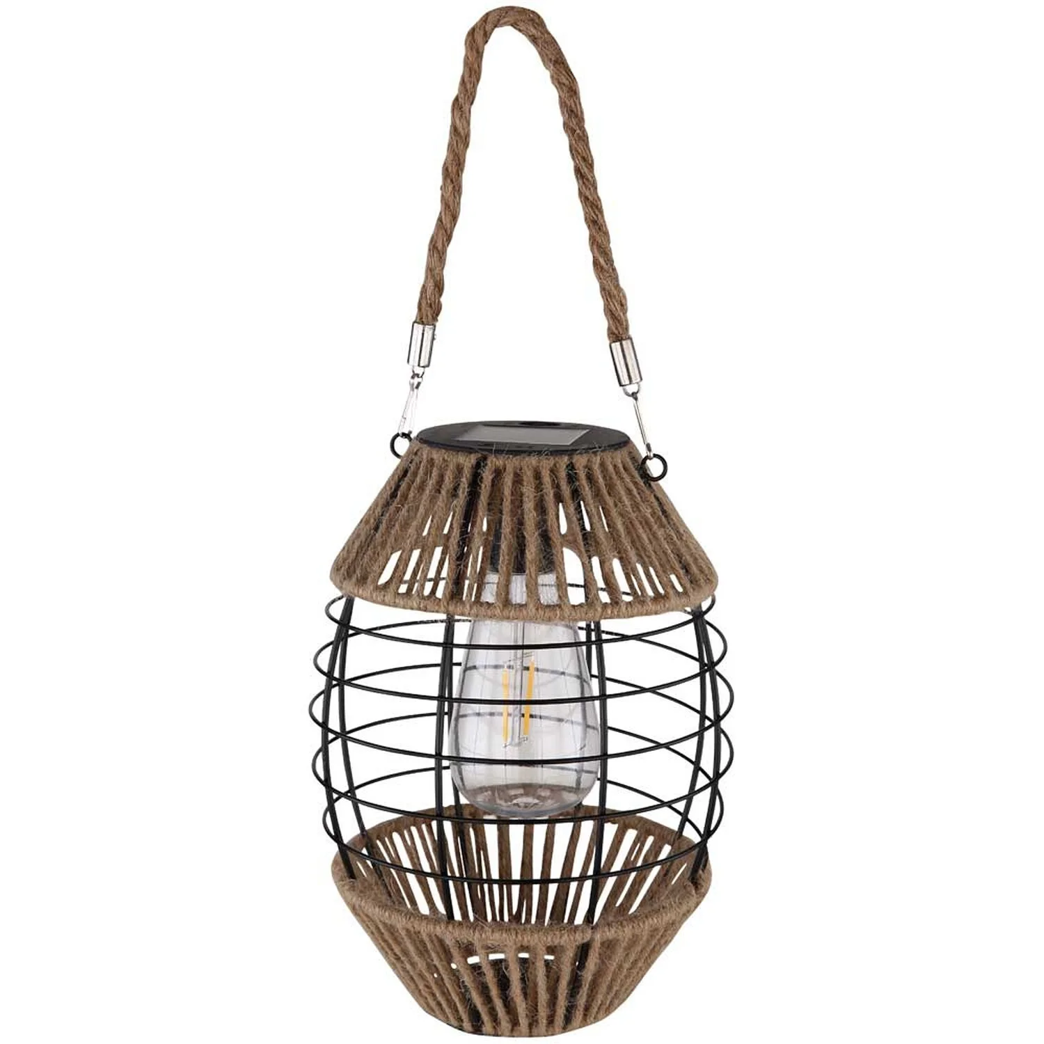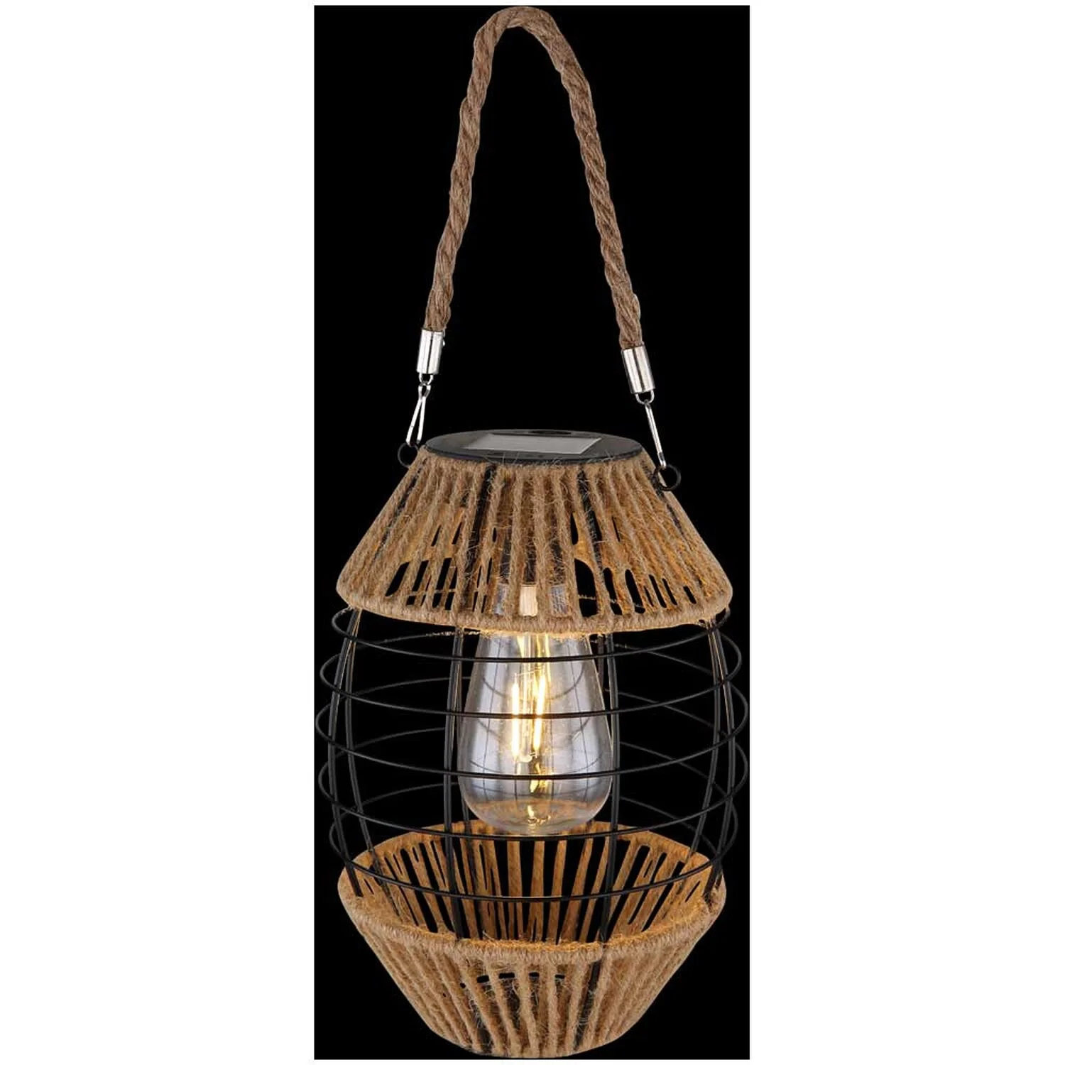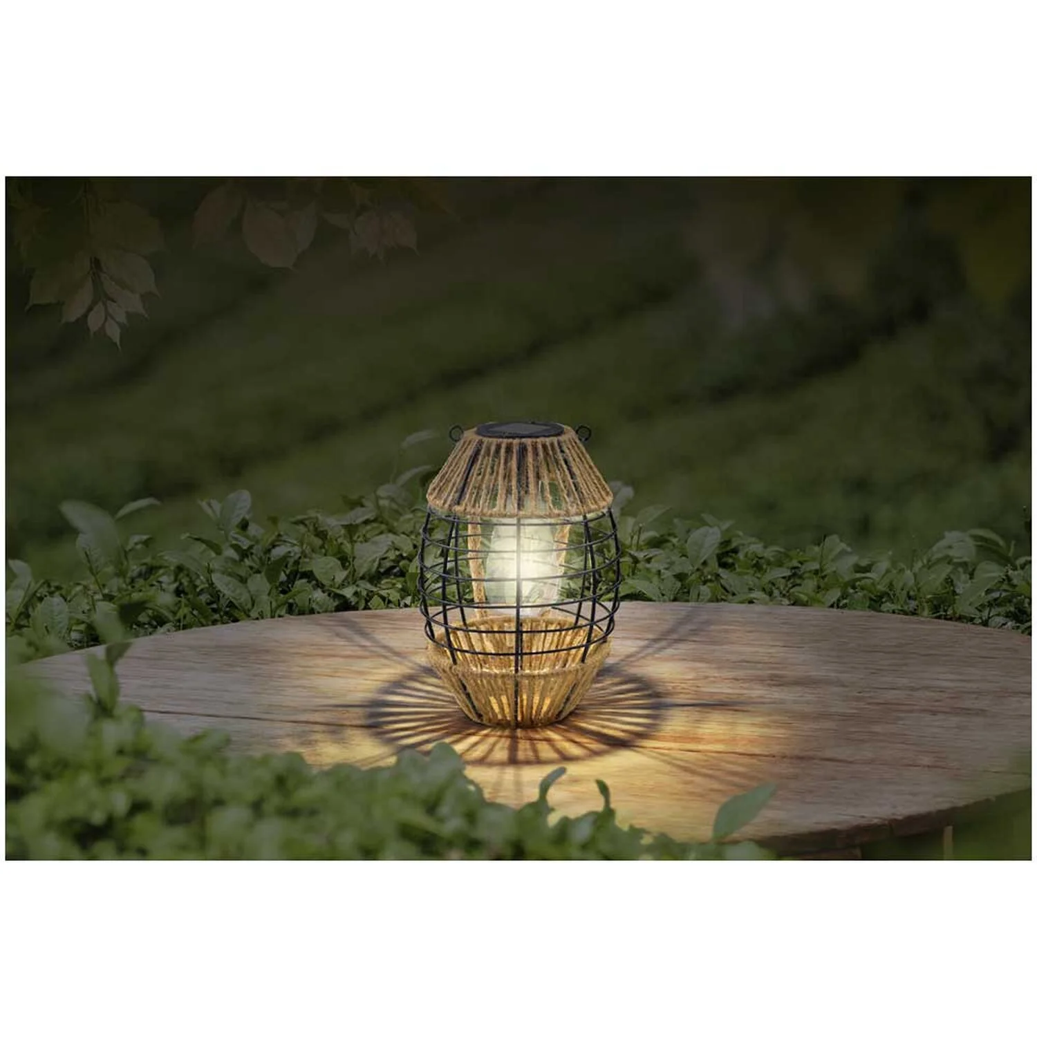 Diese bauchige Solarleuchte von Globo in Form einer Laterne begeistert durch ein schönes Design. Gefertigt aus Edelstahl und naturfarbenem Hanf erzeugt sie über ihr Solarpanel an der Oberseite ein warmweisses Licht (3’000 K) und kann mittels Druckschalter bedient werden. Dank IP44-Schutzgrad gegen Spritzwasser ist die Leuchte ideal für den Aussenbereich geeignet.