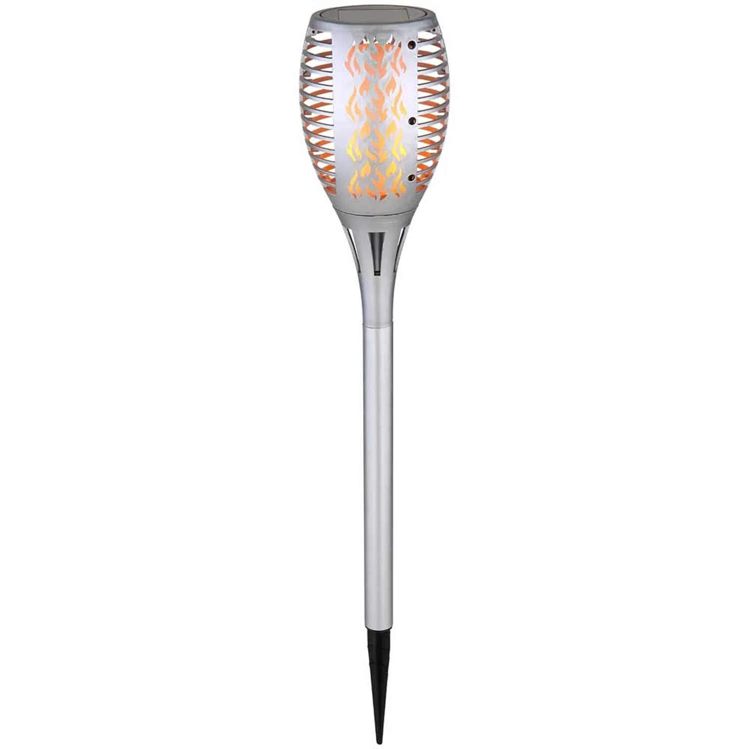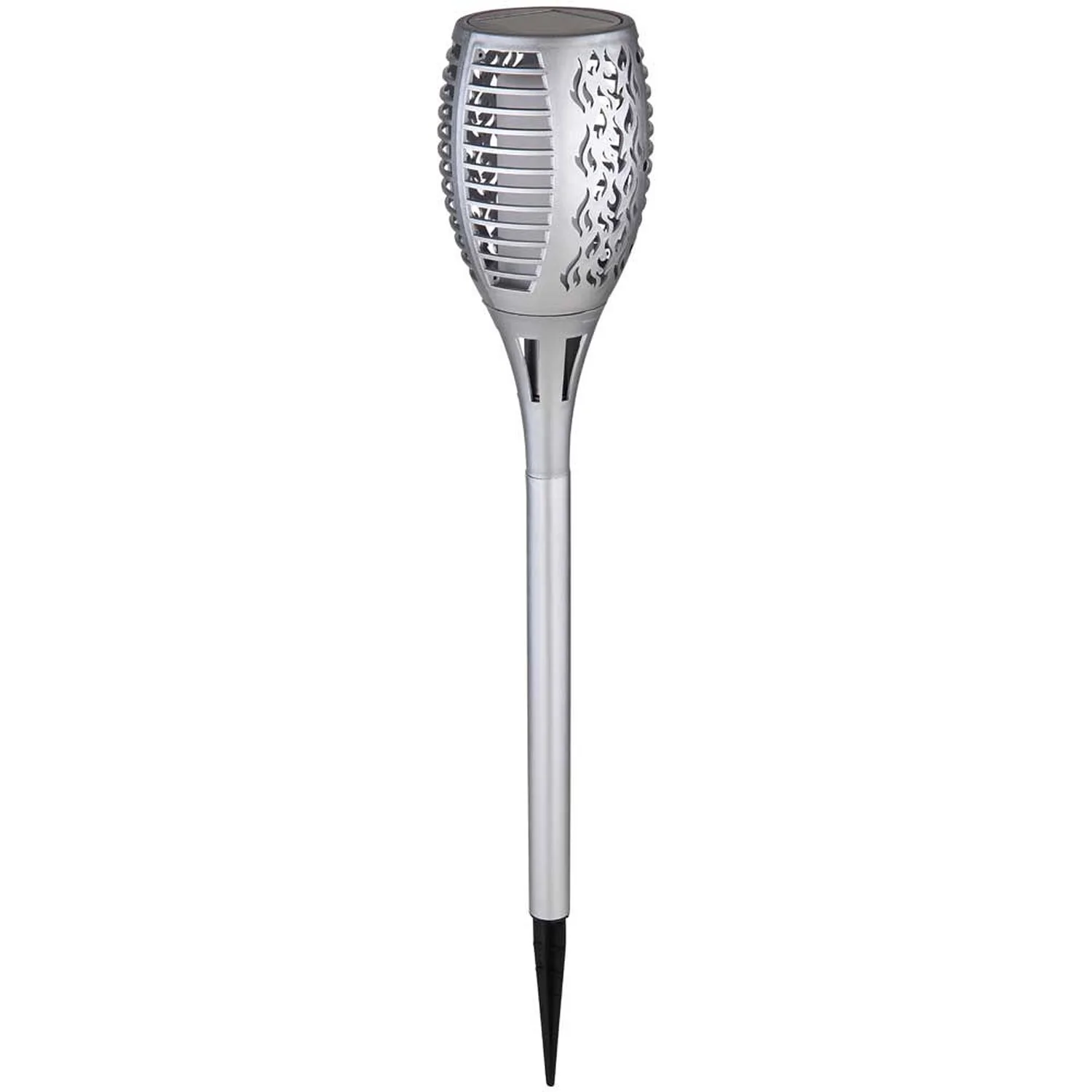 Für eine stimmungsvolle und dekorative Beleuchtung im Aussenbereich sorgt die LED-Solarleuchte von Globo in Fackelform, die mit einem passenden Erdspiess geliefert wird. So kann sie überall im Garten ganz einfach platziert werden. Dank des modernen Solarpanels auf der Oberseite lädt sich die Leuchte tagsüber auf und kann in den Abendstunden bei voller Aufladung bis zu 8 h ihr warmweisses Licht (1’200 K) verbreiten. Solarleuchten sind eine umweltfreundliche Option und lassen sich ganz einfach im Garten installieren, ohne Kabel verlegen zu müssen. Dank IP44-Schutzgrad gegen Spritzwasser ist die Leuchte ideal für den Aussenbereich geeignet.