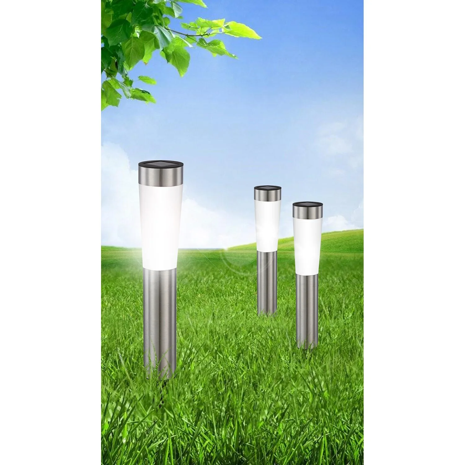 Die Solarleuchte ist ein optisch attraktiver Blickfang für Ihren ganzen Aussenbereich und macht sich besonders gut als Wegbeleuchtung. Diese LED-Lichtquelle ist aus hochwertigem Edelstahl und weissem Kunststoff gefertigt und mit einem leistungsstarken Akku ausgestattet, der mit einer Betriebsdauer von bis zu acht Stunden zu überzeugen weiss. Die Leuchte wird mit zwei fest verbauten LEDs geliefert.