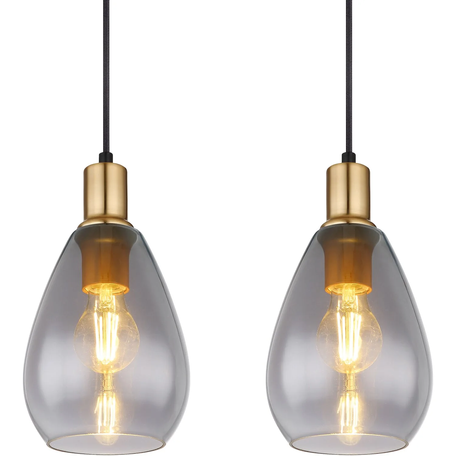 Diese schöne vierflammige Pendelleuchte der Serie Fanni kombiniert schlichtes mit modernem Design. Sie besteht aus vier E27-Fassungen mit jeweils einem ovalen Schirm (Durchmesser: 15 cm) in Rauchfarben und mit Messingverzierungen, die mit schwarzen Kabeln an einer schmalen rechteckigen Deckenbefestigung (90 x 15 cm) 1,2 m von der Decke hängen. Die E27-Fassungen ermöglichen es Ihnen, bis zu einer maximalen Leistung von 40 W eine freie Auswahl von Leuchtmitteln zu verwenden. Mit weiteren Modellen aus dieser Serie können Sie Ihren Wohnbereich weiter verschönern.