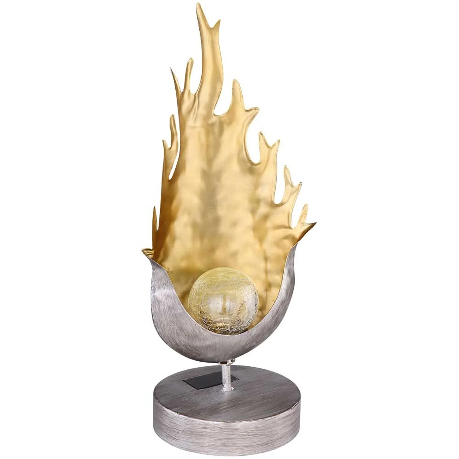 Sehr dekorativ und eindrucksvoll präsentiert sich diese LED-Solarleuchte mit ihrer Flammenoptik. Das Licht, welches von der Glaskugel in Cracked-Optik in der Mitte der Flamme ausgeht, zaubert eine wahre Wohlfühl-Atmosphäre. Dank Solarmodul und Batterie ist keine externe Stromquelle nötig. Die Leuchtdauer beträgt bis zu 8 h. Aufgrund der Schutzart IP44 ist die Leuchte gegen Spritzwasser geschützt und somit prädestiniert für den Aussenbereich. Einzeln oder zu mehreren platziert, lässt sich mit dieser Leuchte ein einmaliges Ambiente im Aussenbereich schaffen.