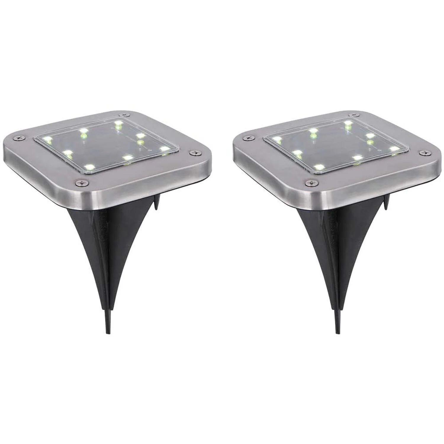 Diese tolle Solarleuchte begeistert durch ihr schönes Design. Aus einem schwarz-matten Erdspitz ragt ein rechteckiges Edelstahlgehäuse (10×10 cm) mit einer LED-Platine, welche ein 6’000 K kaltweisses Licht ausstrahlt und über die Schutzart IP44 gegen Spritzwasser verfügt.