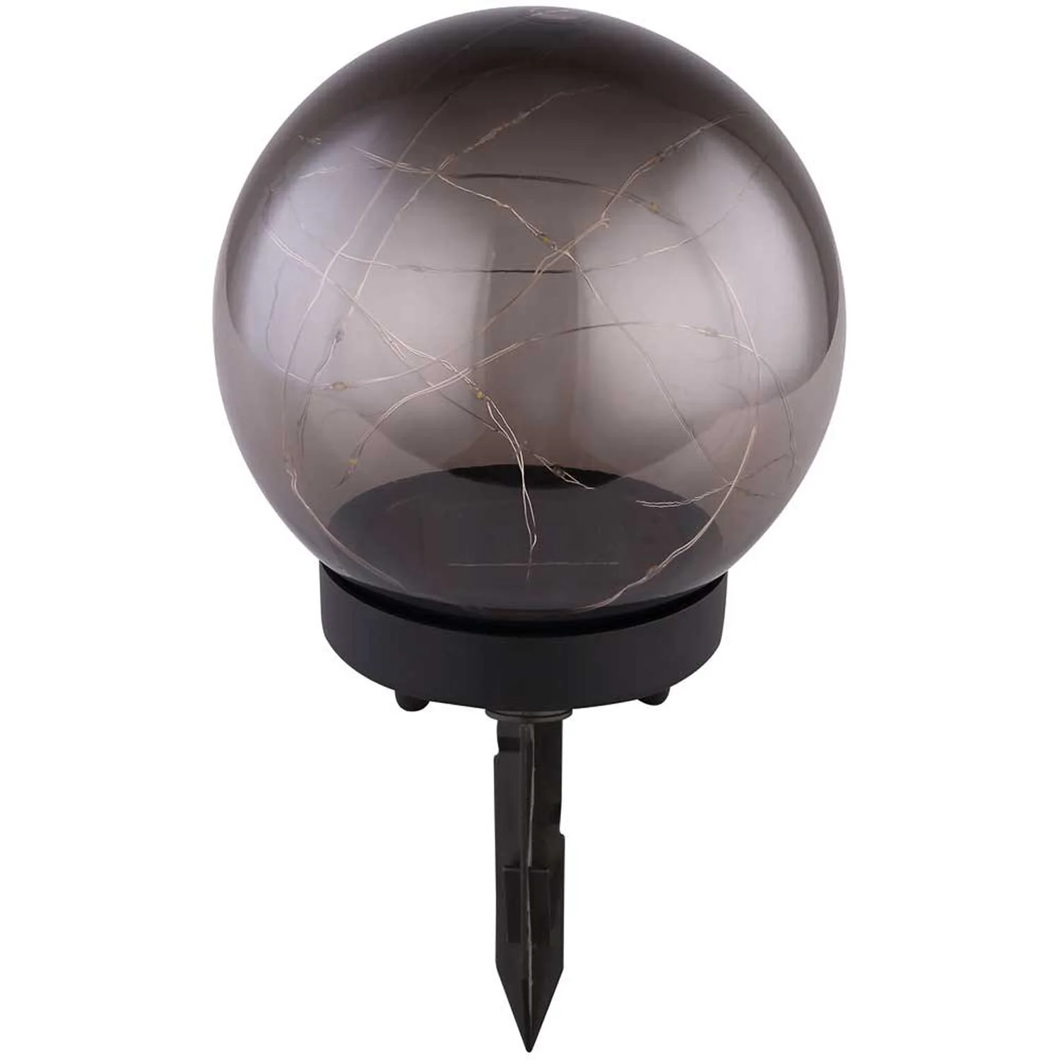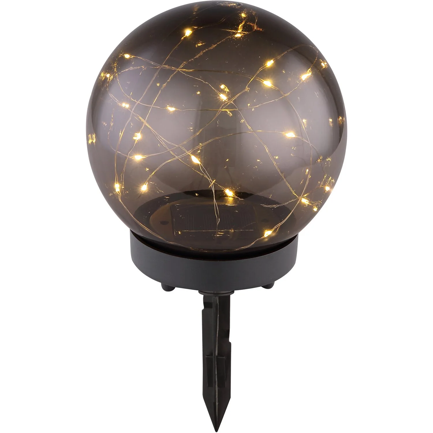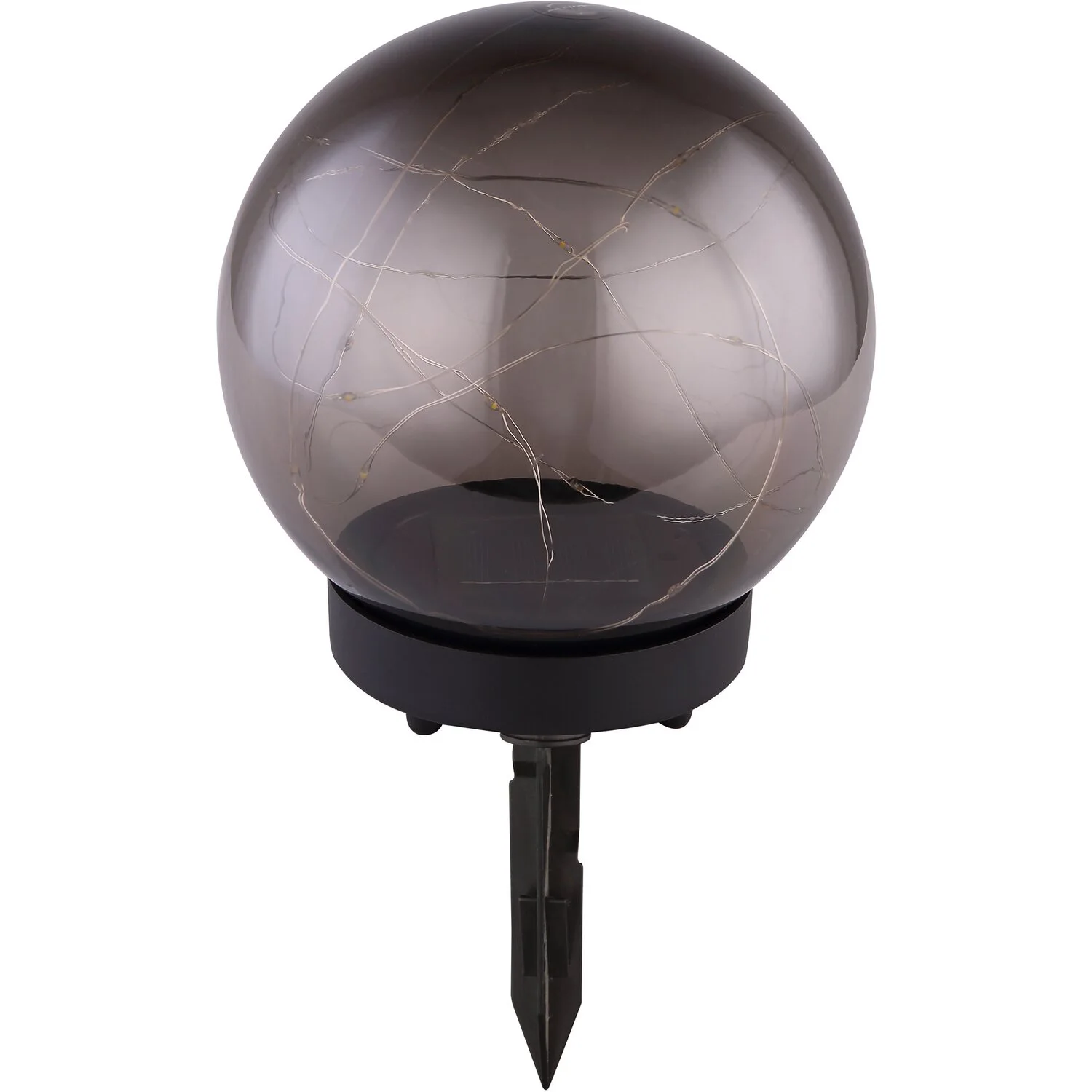 Die kugelförmige Solarleuchte mit einem Durchmesser von 15 cm sorgt für eine besondere Atmosphäre. Die sich im rauchigen Glas befindliche LED-Lichterkette kann bei voller Aufladung bis zu 8 h für eine einzigartige Umgebung sorgen. Die Solarleuchte verfügt über einen Ein- und Ausschalter und wird mit aufladbaren Akkus geliefert.