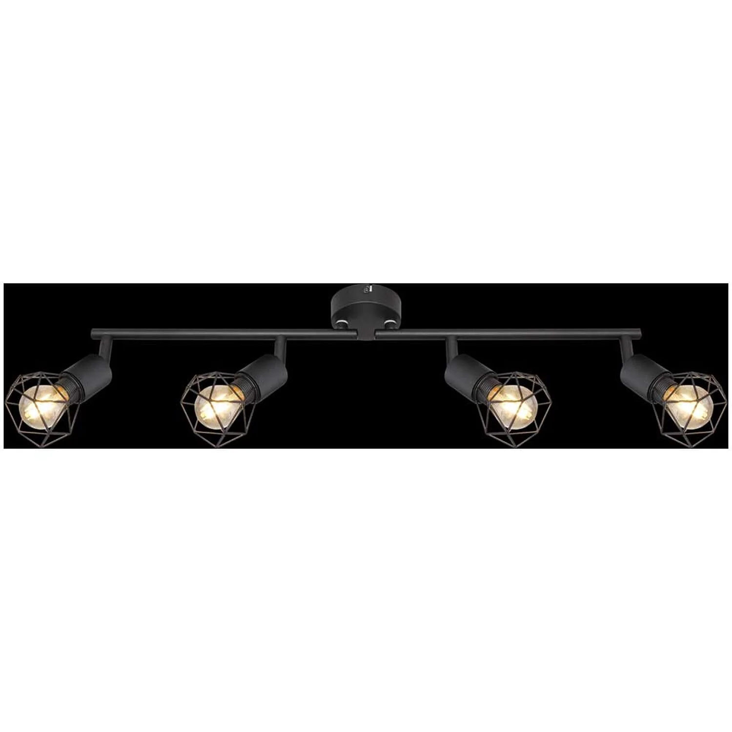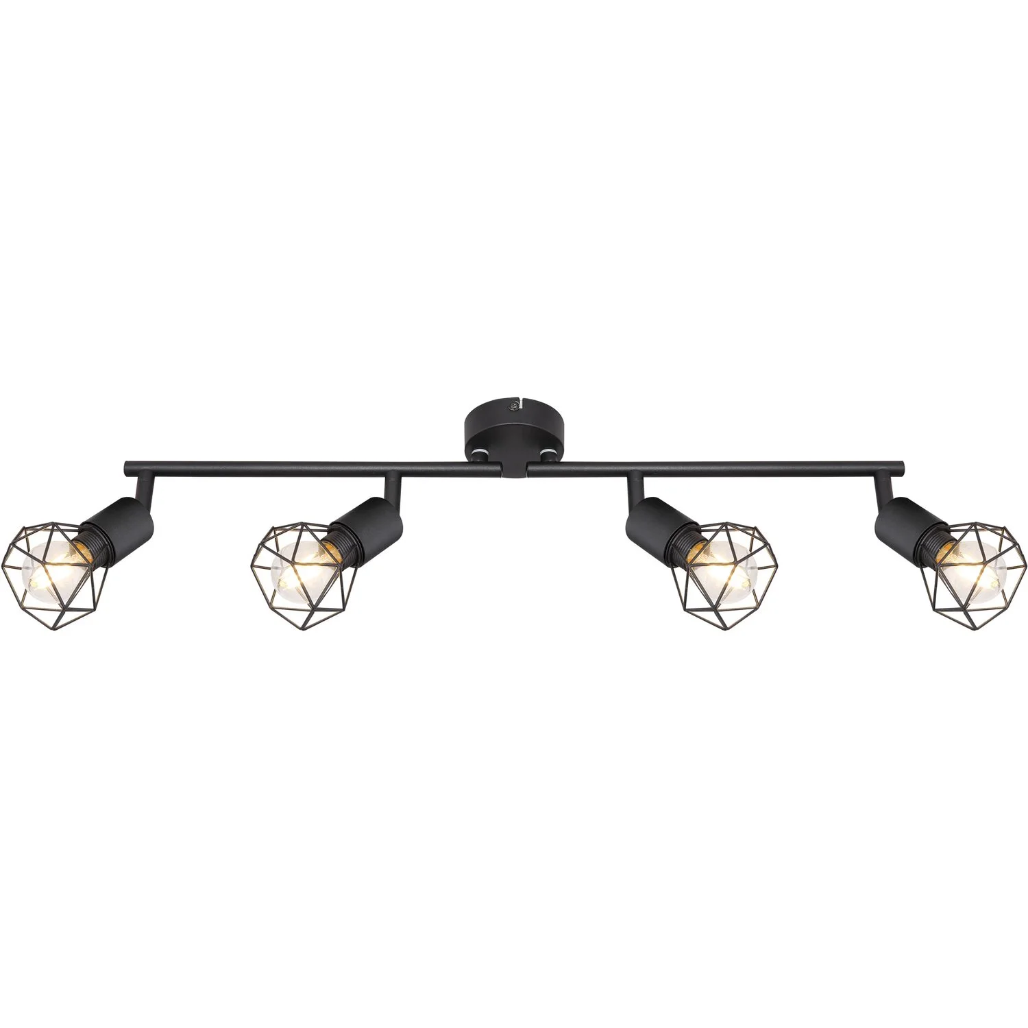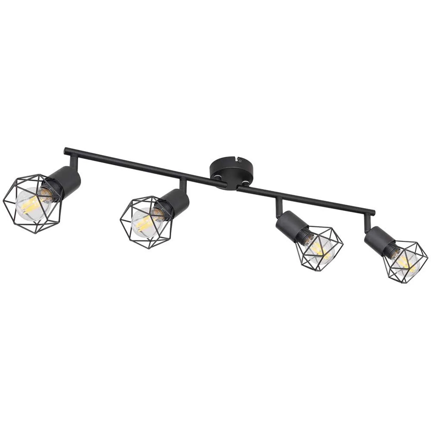 Der Deckenstrahler Xara I überzeugt mit seinem eleganten Design. Die vier beweglichen, an zwei starren Armen befestigten schwarzen diamantförmigen Metallkäfige, sollten alle Blicke auf sich ziehen. Die Spots dieses Strahlers sind mit jeweils einer E14-Fassung ausgestattet, die es Ihnen ermöglichen das für Sie passende Leuchtmittel (max. 40 W) selbst auszuwählen und damit Lichtfarbe und Lichtstärke zu bestimmen. Aufgrund ihrer Stromersparnis und Langlebigkeit werden LED-Leuchtmittel empfohlen. Mit weiteren Strahlern aus dieser Serie können Sie das Bild in Ihren vier Wänden komplettieren.
