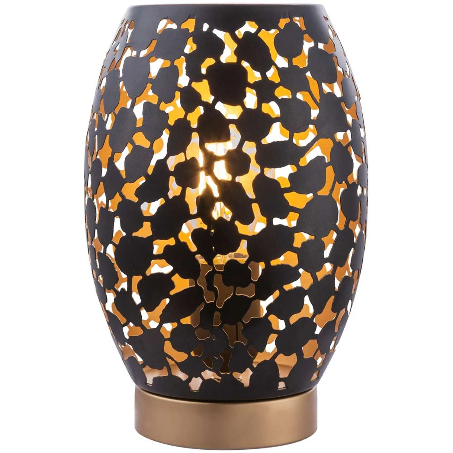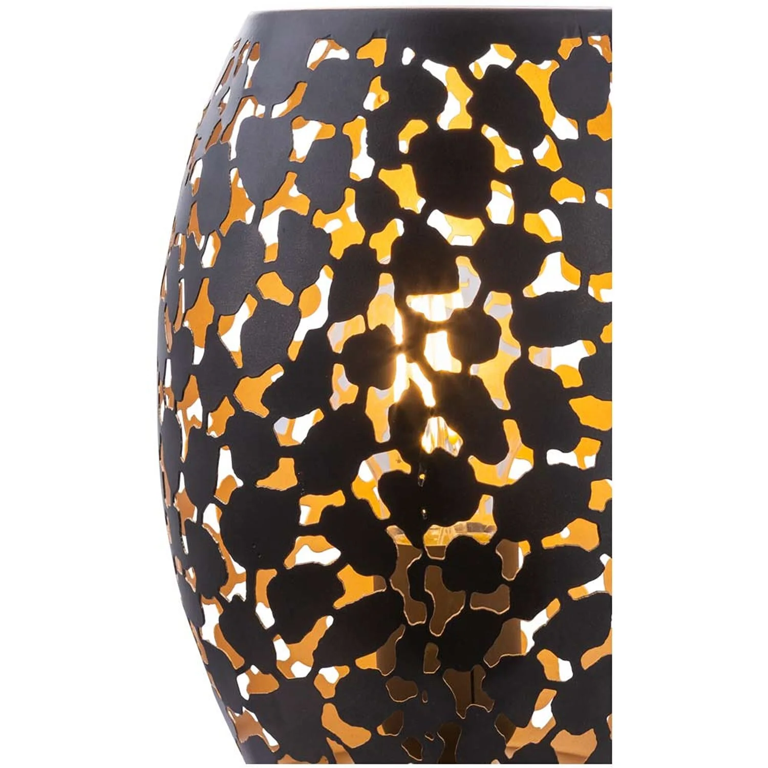 Die Globo Tischleuchte Hanny besticht mit einem Lochdesign in Gold und Weiss und einem farblich abgestimmten Sockel. Die Tischlampe weist eine Höhe von 23 cm auf und besitzt einen eigenen Ein-/ Aus-Schalter im Zuleitungskabel. Die Tischleuchte Hanny verfügt über eine E27-Fassung und wird ohne Leuchtmittel ausgeliefert. Dies erlaubt es Ihnen, ein Leuchtmittel der gewünschten Lichtfarbe und mit dem gewünschten Lichtstrom selbst auszuwählen (max. 40 W).