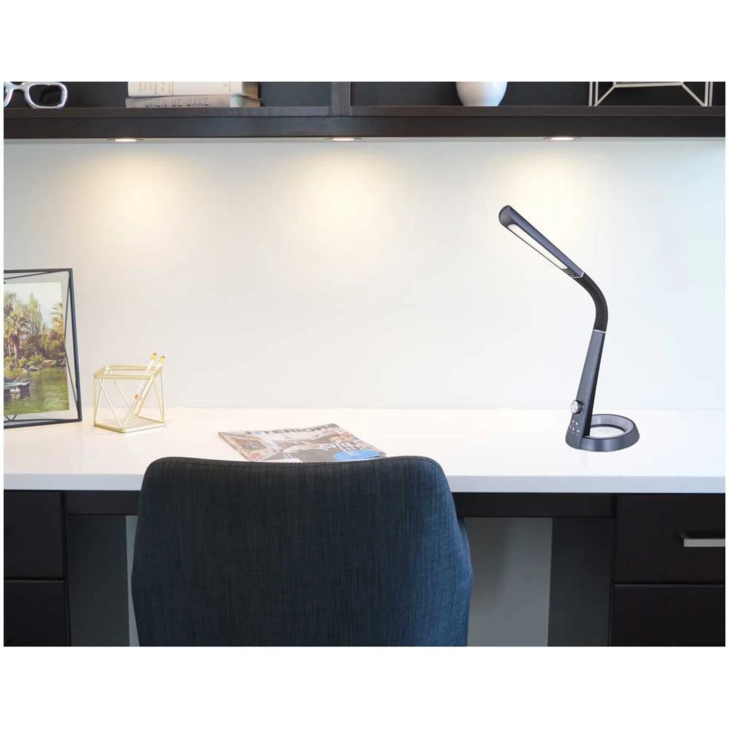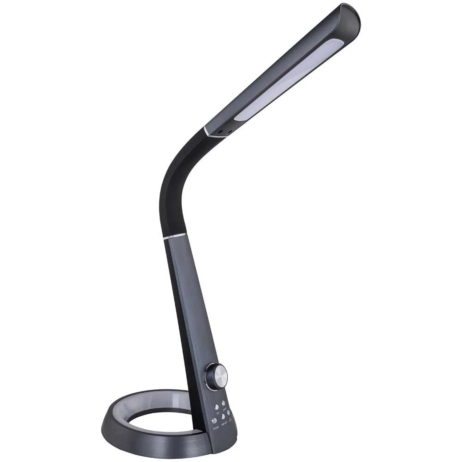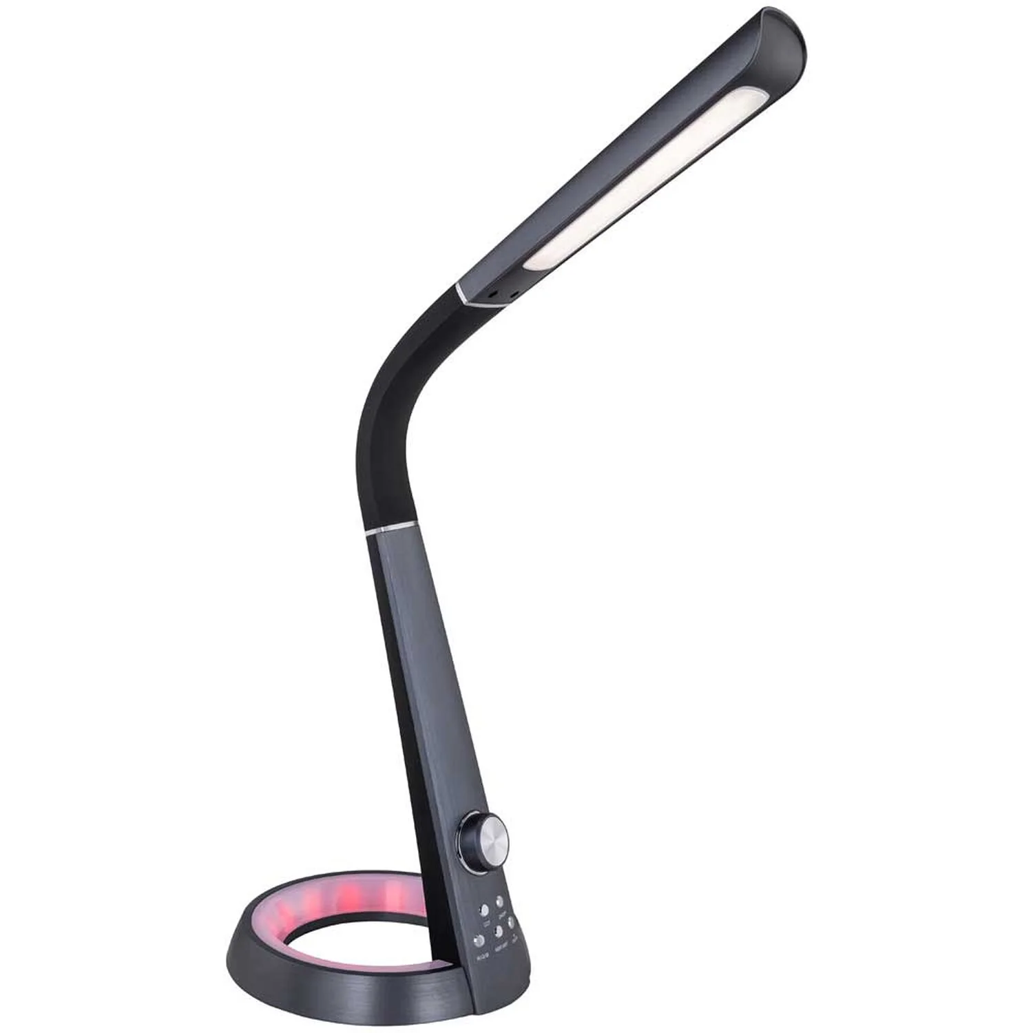 Die Tischleuchte Mitti aus schwarzem Kunststoff ist ein Modell für Jung und Alt. Ausgestattet mit einem Flexoarm, einem Farbwechsler, einer Touchfunktion und der Möglichkeit, Farben zu fixieren, lässt diese dimmbare Schreibtischleuchte keinerlei Wünsche offen.