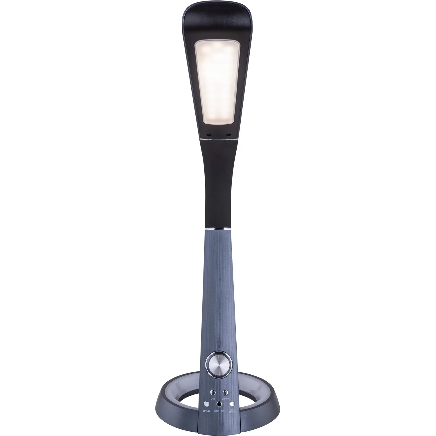 Das 8-Watt-LED-Leuchtmittel leistet bis zu 450 Lumen bei einer Lichtstärke von warmweissen 3’000 K, neutralweissen 4’300 K oder kalten 6’300 K. Der auffällige Sockel, der durch das integrierte 2-Watt-LED-RGB-Leuchtmittel in unterschiedlichen Farben erstrahlen kann, macht diese Leuchte zu einem Hingucker in jeder Wohnung.