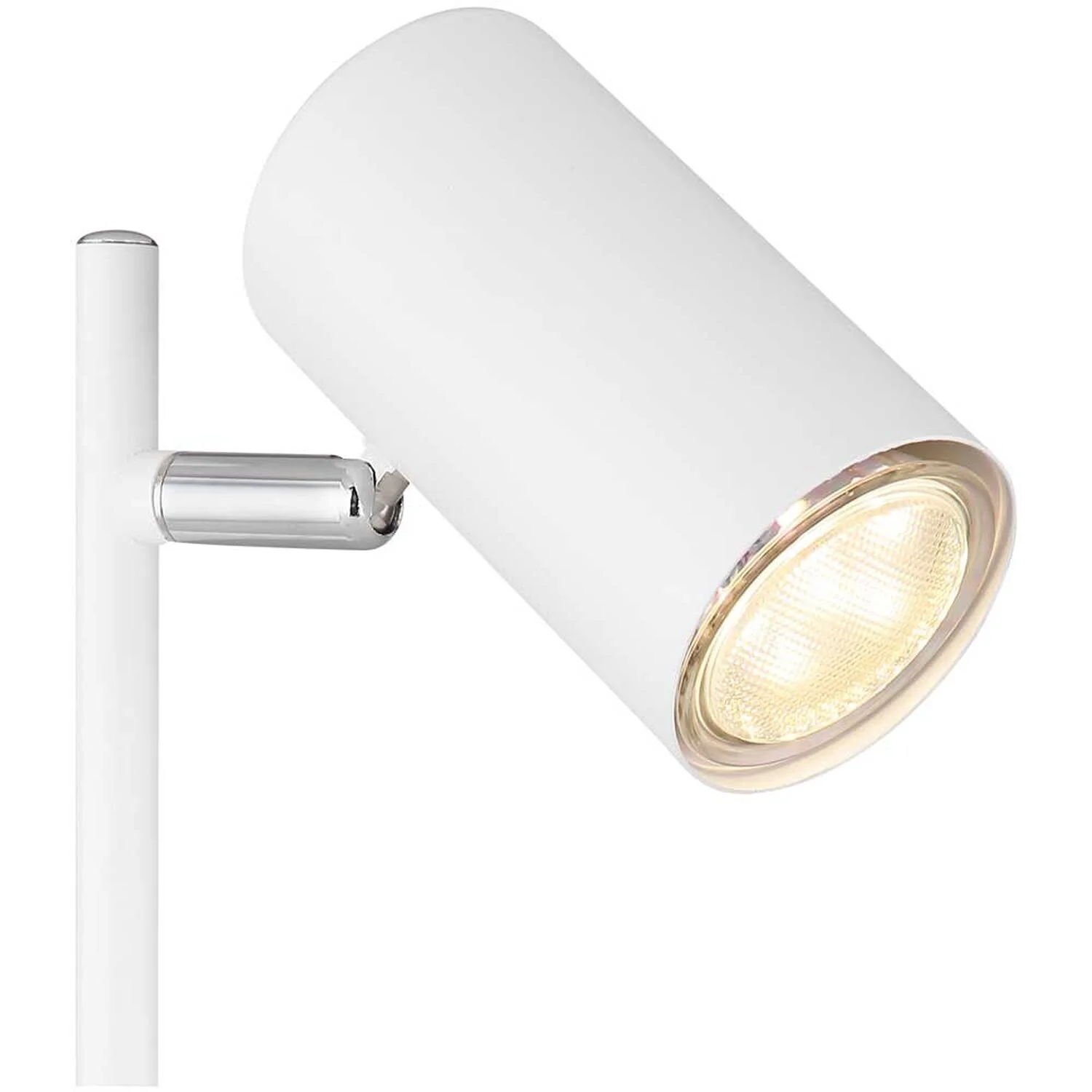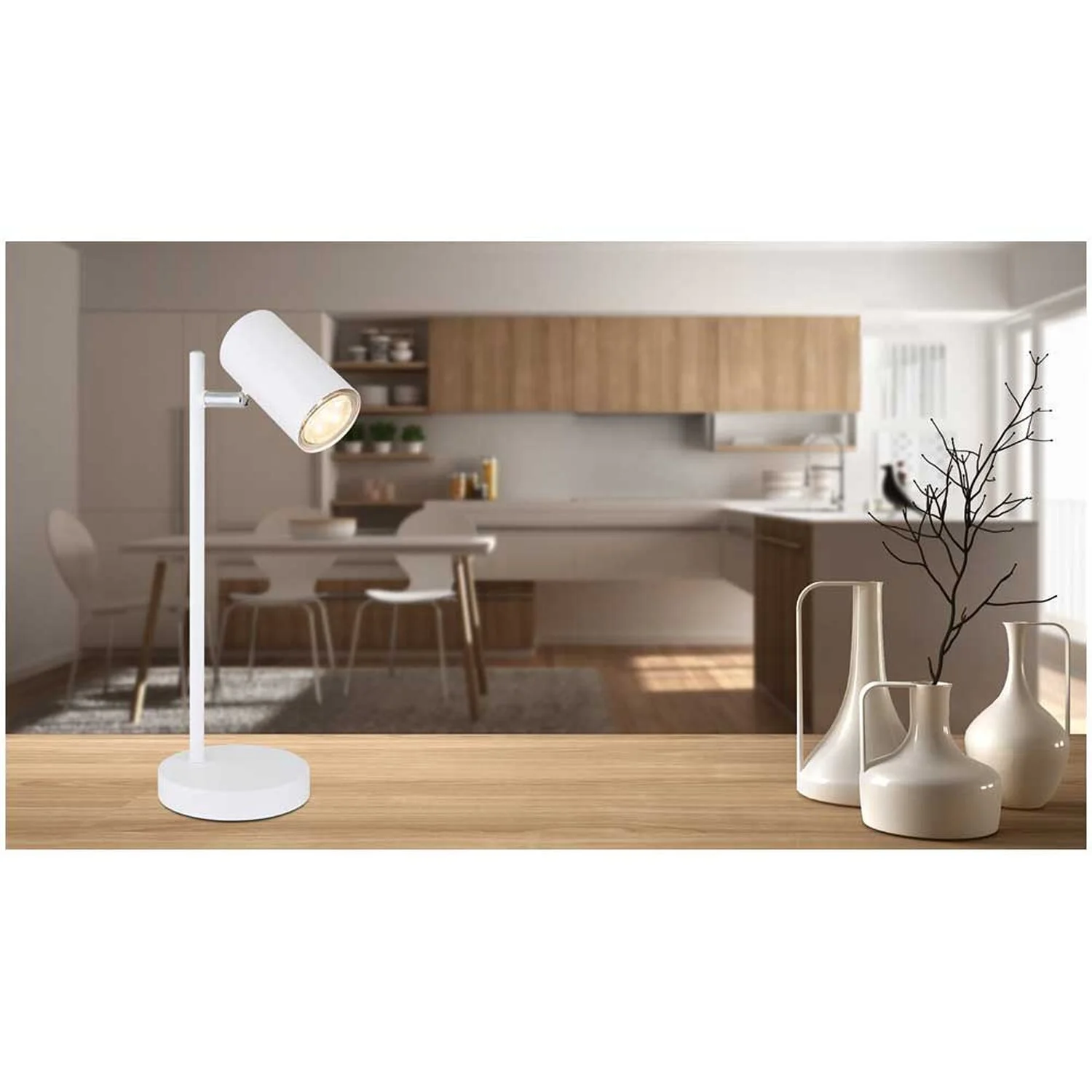 Die Globo Tischleuchte aus der Serie Robby setzt schöne Lichtakzente im Zuhause und lässt sich zum Ausleuchten von kleinen Nischen, Kommoden oder Beistellmöbeln verwenden. Sie hat einen Durchmesser von 12 cm und misst eine Höhe von 35 cm. Gefertigt ist die Tischlampe in langlebiger Qualität mit einem runden Sockel und Stab aus weissem Metall. Die GU10-Fassung ist schwenkbar und ermöglicht damit eine gezielte Ausleuchtung im Wohnbereich. Für eine stimmungsvolle Beleuchtung benötigt die Tischlampe ein LED-Leuchtmittel mit 5 W und 230 V, das separat erhältlich ist. Zum bequemen Ein- und Ausschalten dient ein praktischer Schalter.