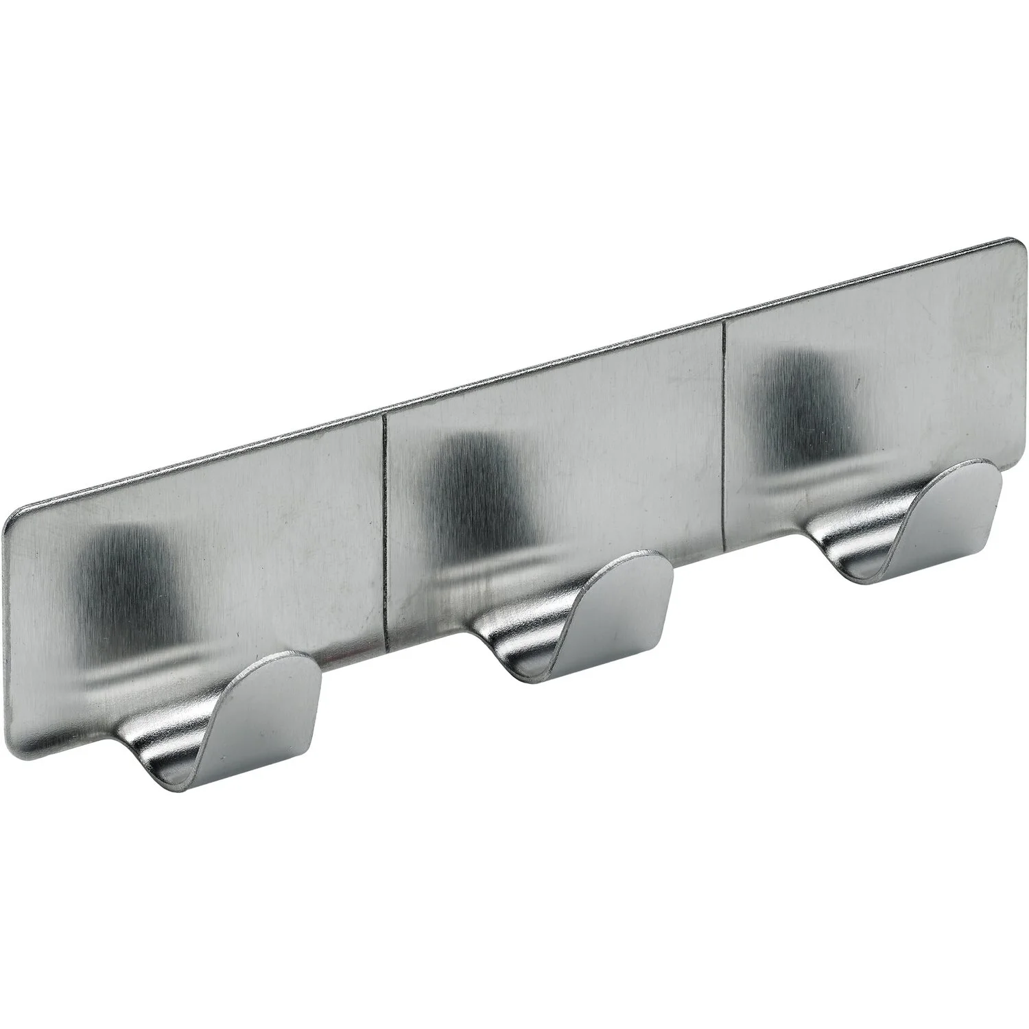 Die Hakenleiste in Edelstahl-Optik ist aus Stahl gefertigt und hat die Masse (HxBxT) 28 x 120 x 20 mm.