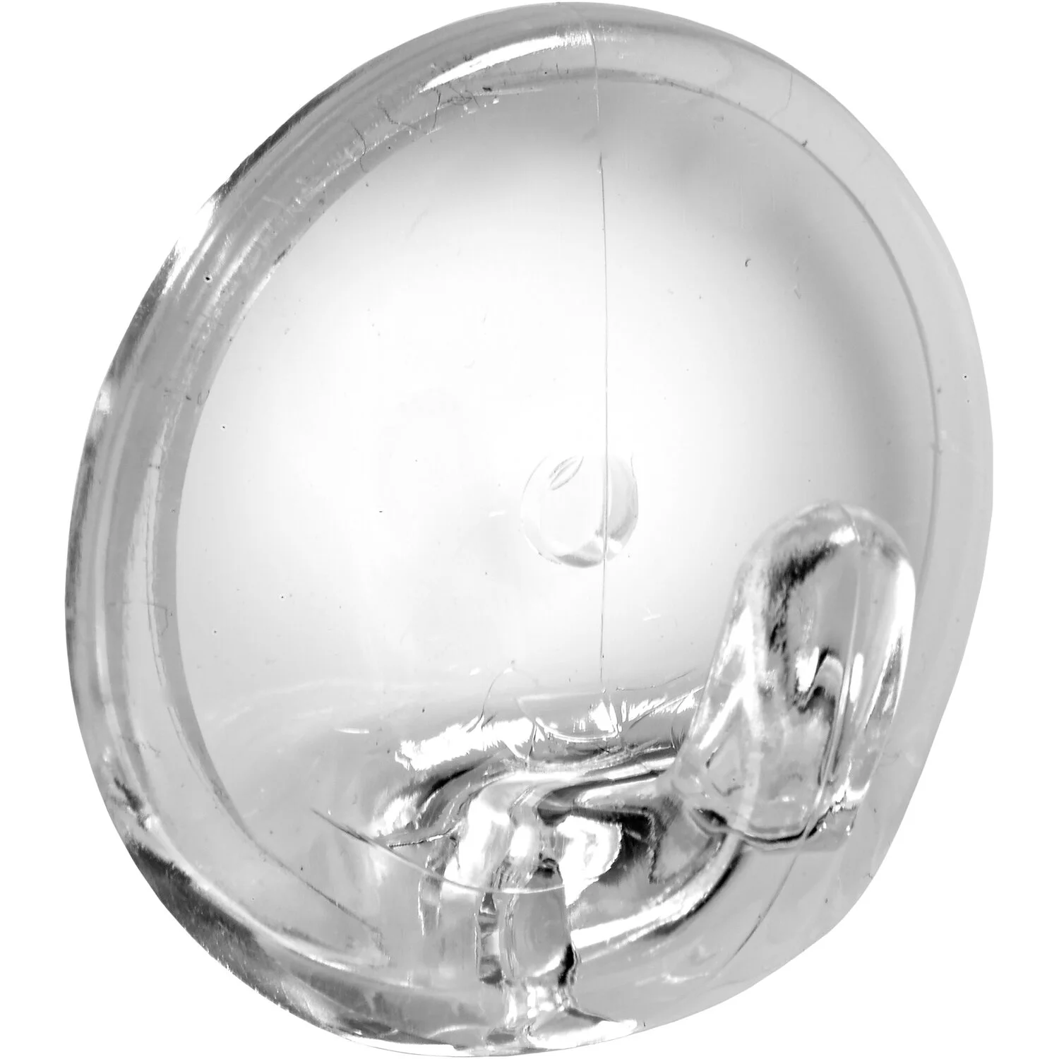Der transparente Klebehaken ist aus Kunststoff gefertigt und hat einen Durchmesser von 36 mm. Im Lieferumfang befinden sich zwei Stück.
