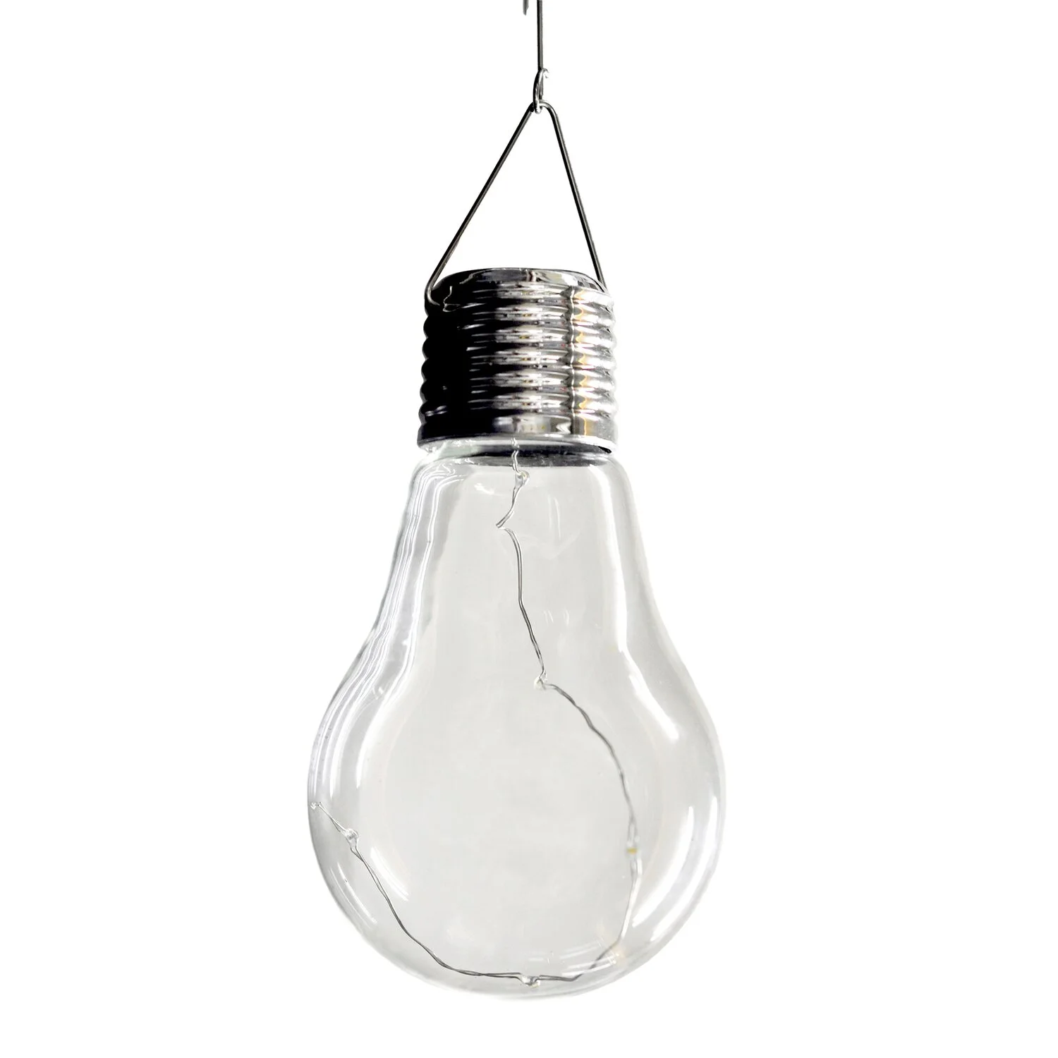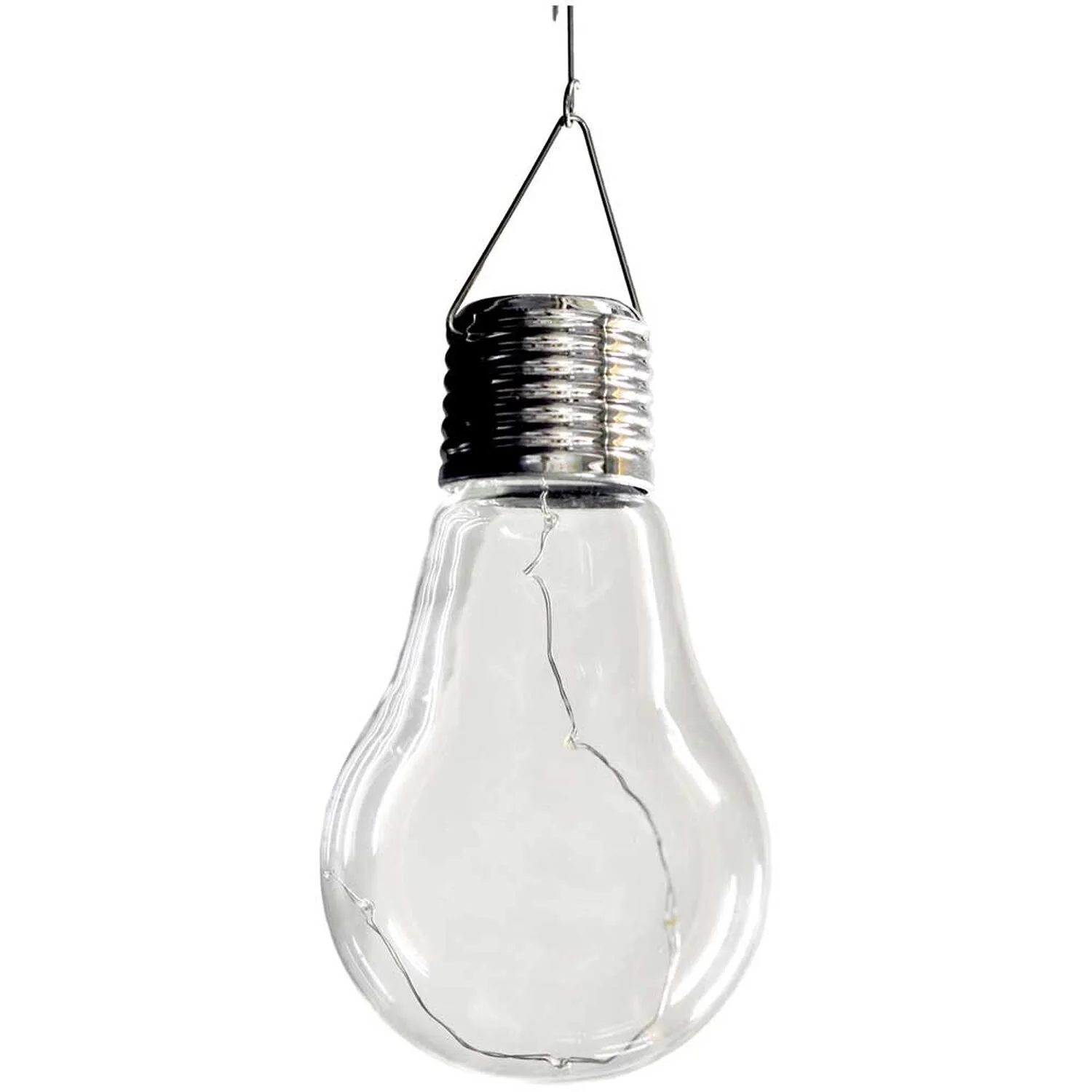 Diese LED-Solarleuchte zum Aufhängen in Form einer Glühbirne ist aus Glas gefertigt und sorgt für eine stimmungsvolle Beleuchtung im Garten, auf der Terrasse oder dem Balkon. Sie ist modern und bringt wunderschöne Akzente in einem warmweissen Ton hervor. Darüber hinaus verfügt die Leuchte über eine moderne LED-Technologie. Mit einer Schutzart von IP44 hält die Leuchte Spritzwasser stand.