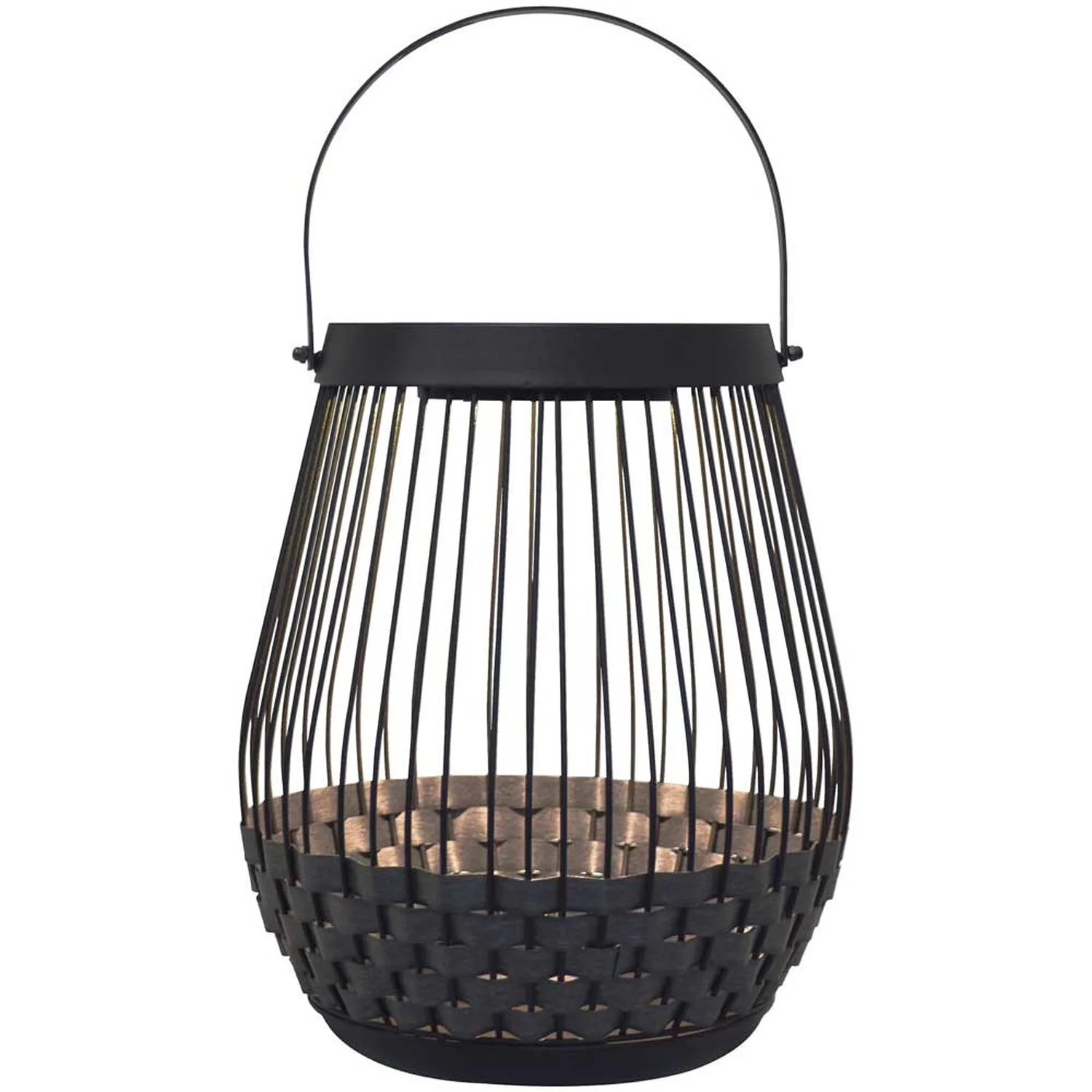 Die braune LED-Solarleuchte aus Metall und Rattan zum Aufhängen verfügt über ein 8 x 8 cm grosses Solarpanel. Sie enthält einen Lithiumionen-Akku 3,7 V.