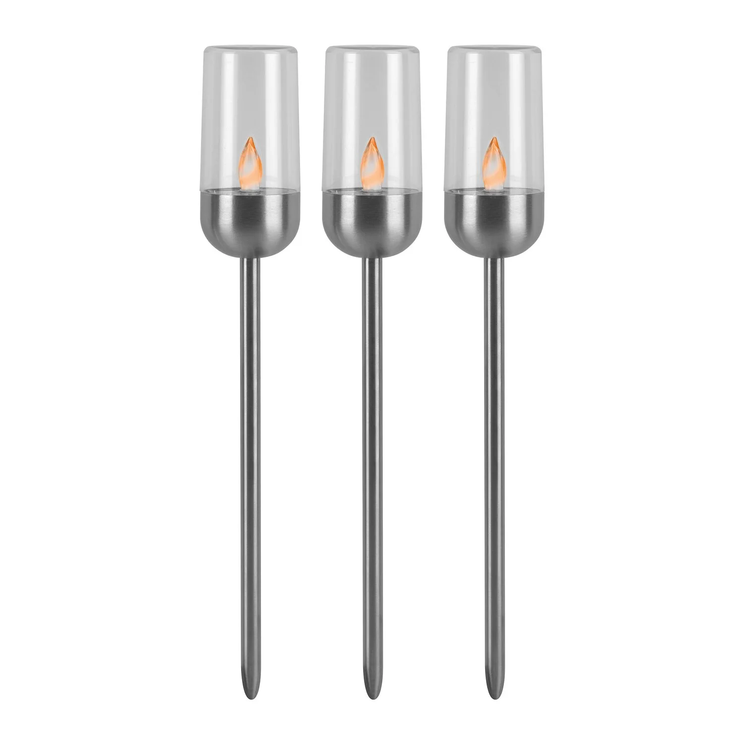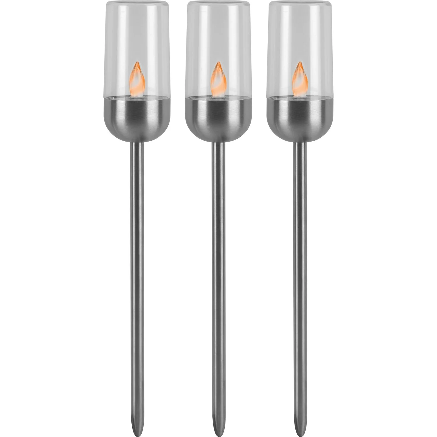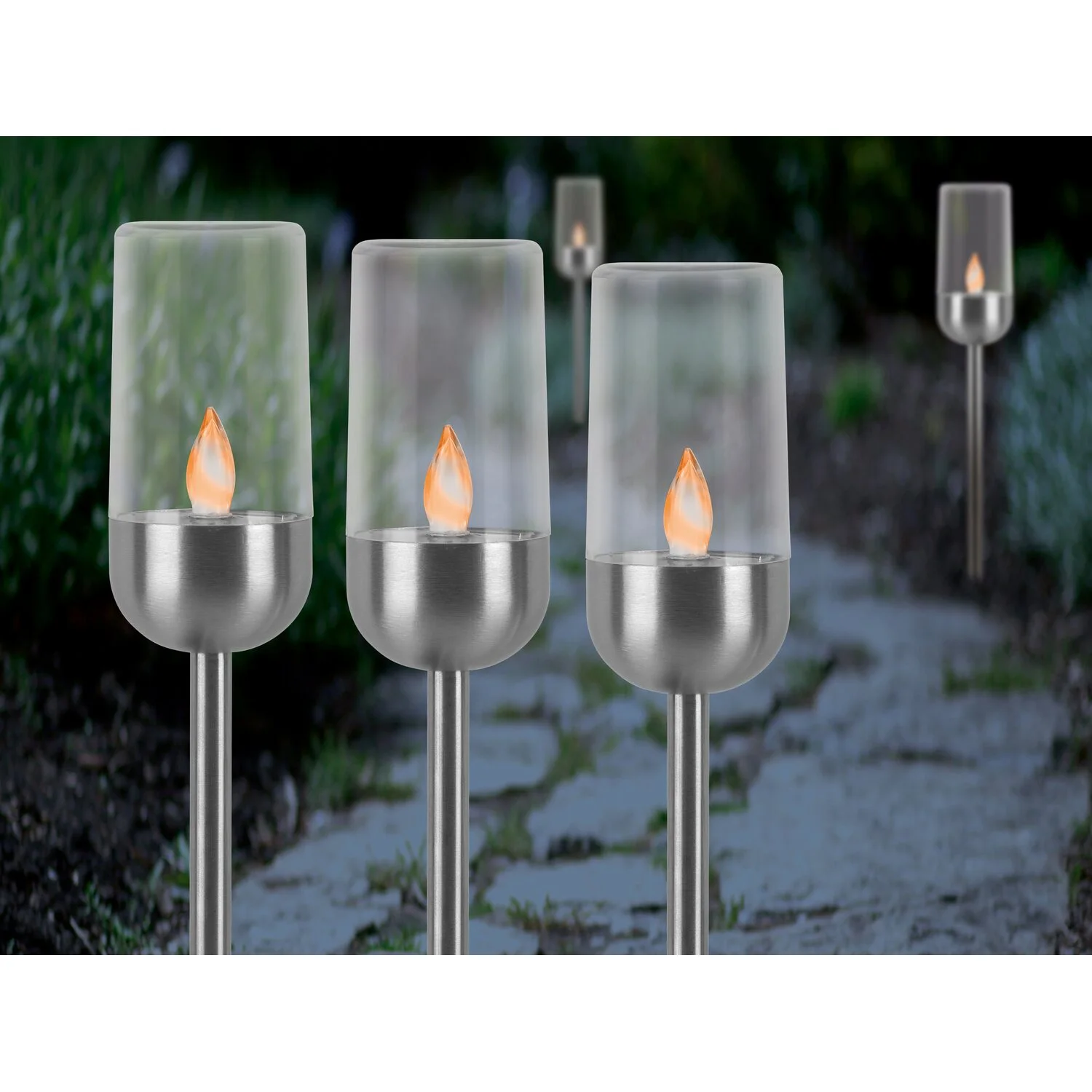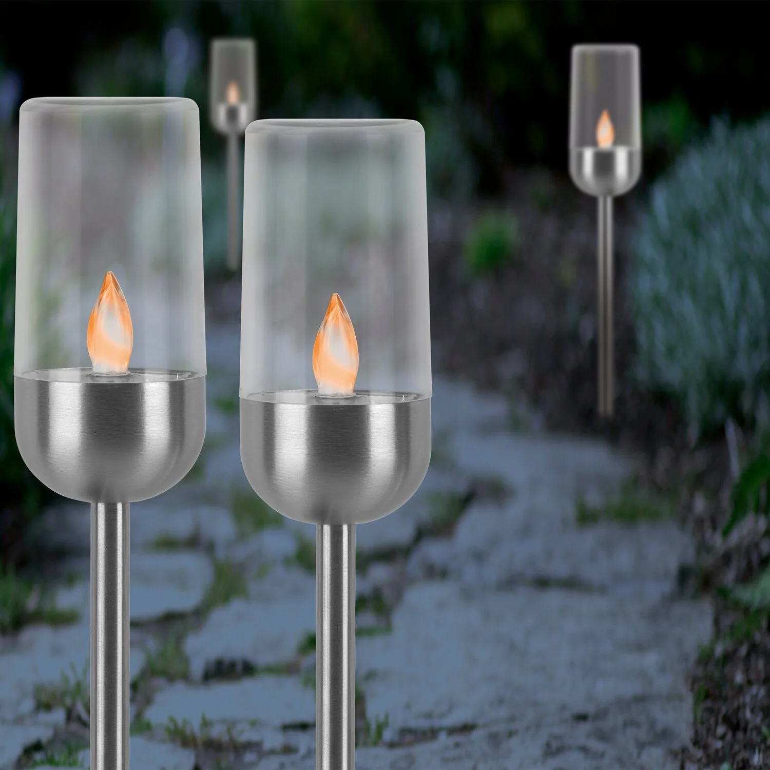 Beleuchtet wird der Solarspiess mit einem fest verbauten LED-Leuchtmittel, das durch einen integrierten Akku betrieben wird. Ein besonderes Highlight stellt der warmleuchtende Flammeneffekt dar. Dieser ist dem Licht von Fackeln nachempfunden, kann aber im Gegensatz zu diesen immer wieder verwendet werden. Mit der Schutzart IP 44 ist die Solarleuchte gegen Spritzwasser geschützt.