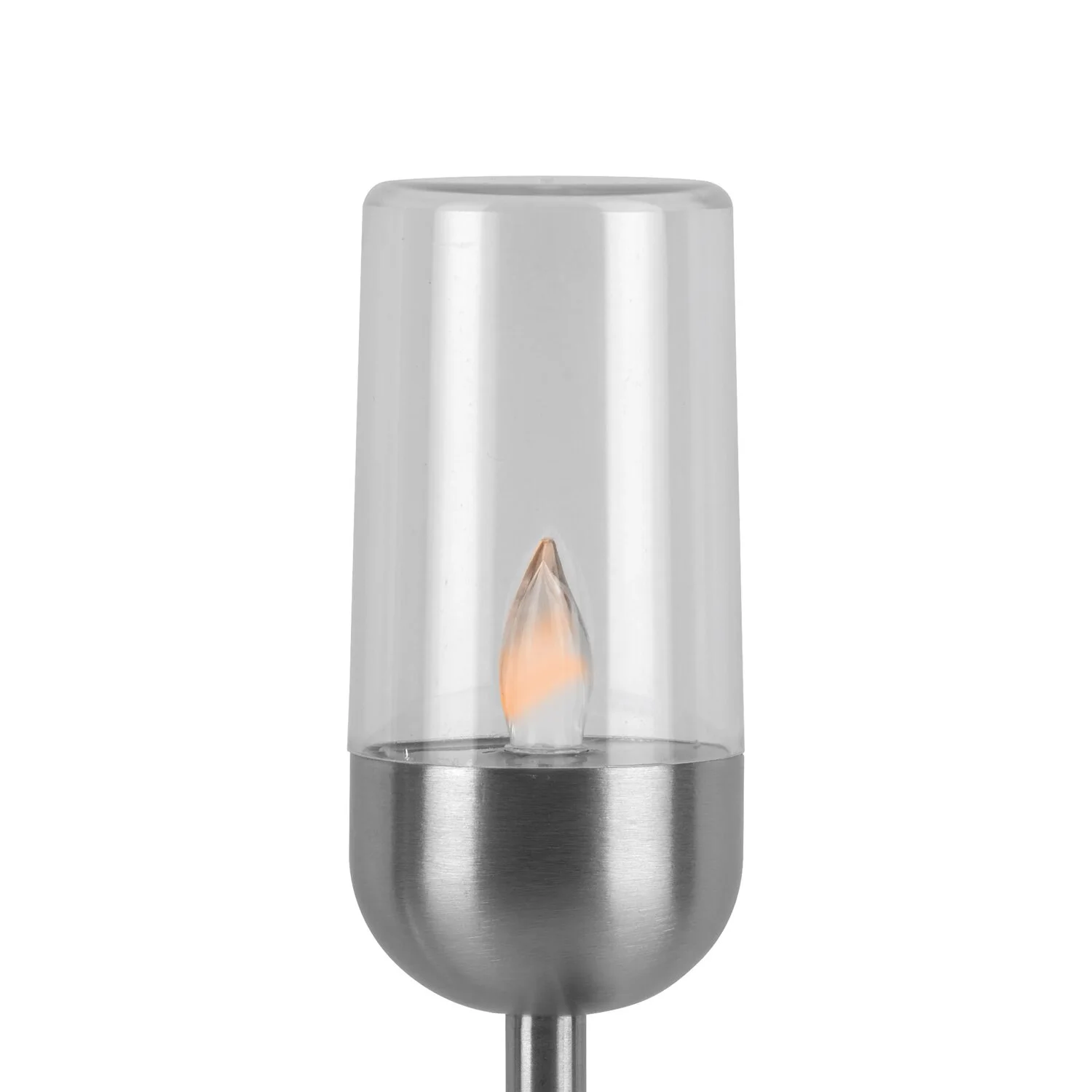 Der LED-Solarspiess Fackel sorgt für ein romantisches Ambiente in Ihrem Garten oder auf der Terrasse. Die Solarzellen sammeln und speichern über den Tag einstrahlende Sonnenenergie, die mit Einsetzen der Dämmerung wieder abgegeben wird und so für schöne Lichteffekte sorgt. So ist ein flexibler Einsatz unabhängig von Steckdosen möglich. Gefertigt ist das Gestell aus hochwertigem und robustem Edelstahl, während der Schirm aus langlebigem weissem Kunststoff besteht. Die Masse des Spiesses betragen (HxBxT) 47 x 6 x 6 cm.