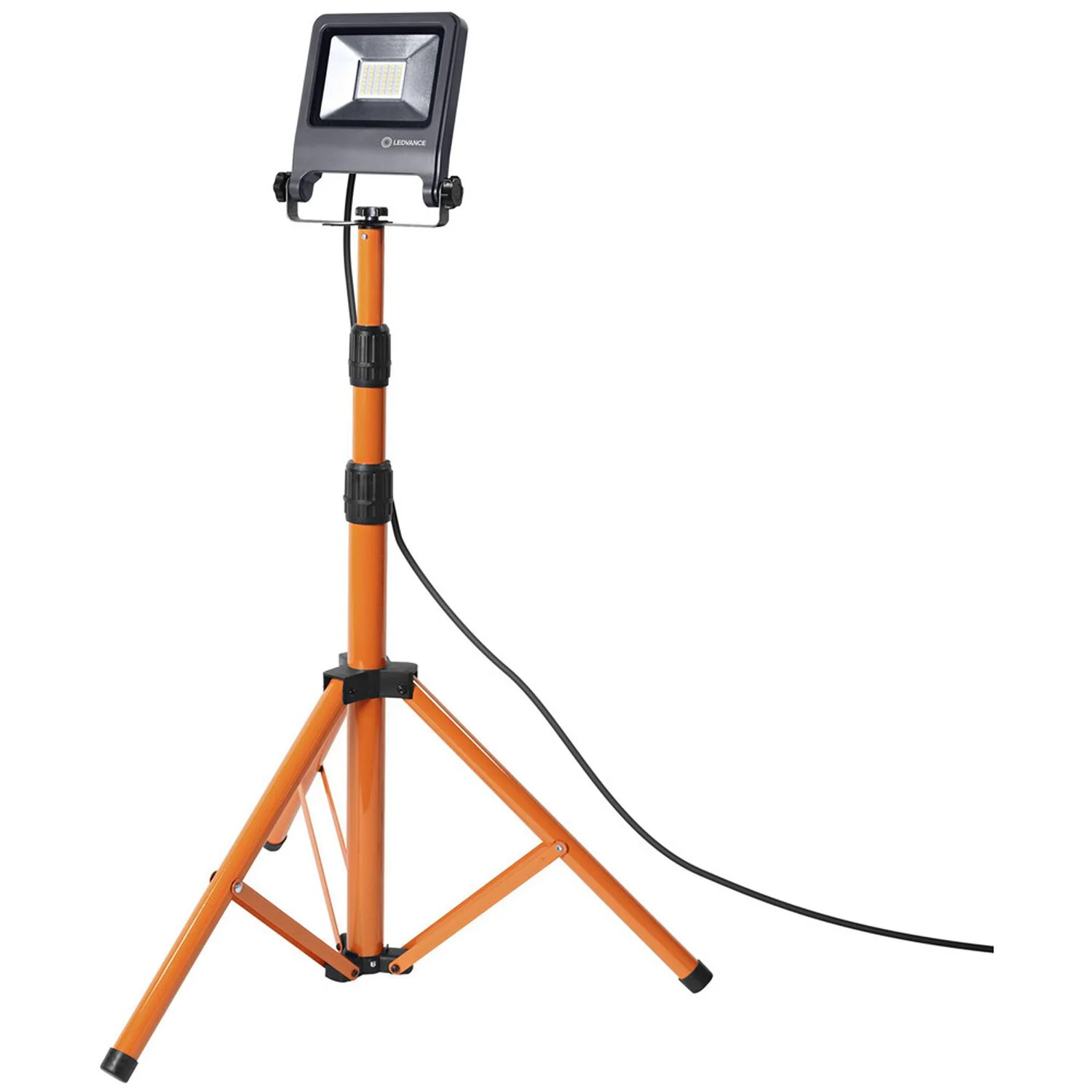 Die Arbeitsleuchte Worklight Tripod 1 x 30 W von Ledvance ist ideal für die Beleuchtung von Garage, Keller und Werkstatt und bei Renovierungsarbeiten geeignet. Die Arbeitsleuchte hat ein kompaktes Design und ist mit einem schwenkbarem Leuchtenkopf und einem 2 m langen Kabel ausgestattet. Die teilmattierte Abdeckung aus gehärtetem Glas sorgt für eine gleichmässige Lichtverteilung. Die Arbeitsleuchte Worklight weist, verglichen mit Halogenlampen-Arbeitsleuchten, eine Energieersparnis von bis zu 80 % auf. Der Leuchtekopf und das Leuchtengehäuse verfügen über die Schutzart IP65, der Stecker über die Schutzart IP44. Die Masse sind (HxBxT) 190 x 60 x 68 cm.