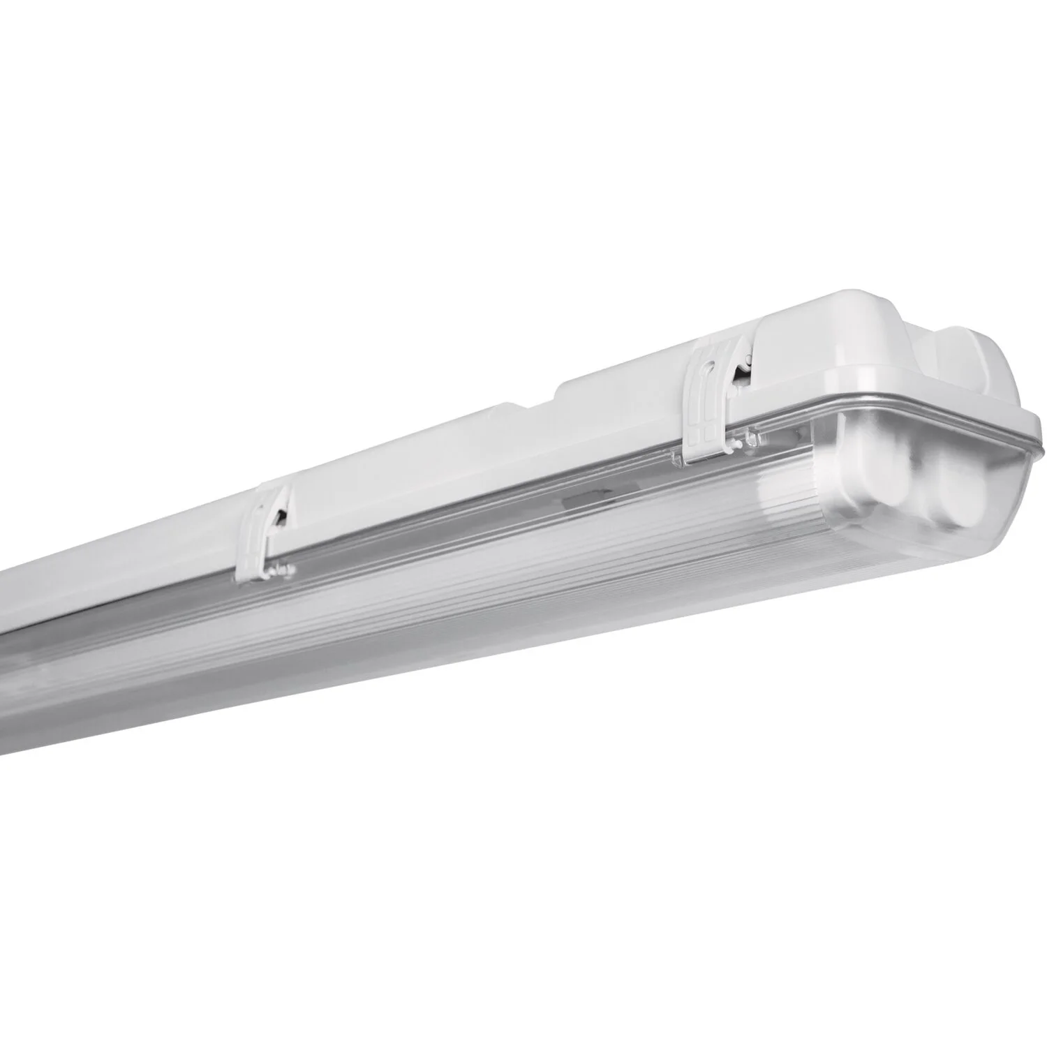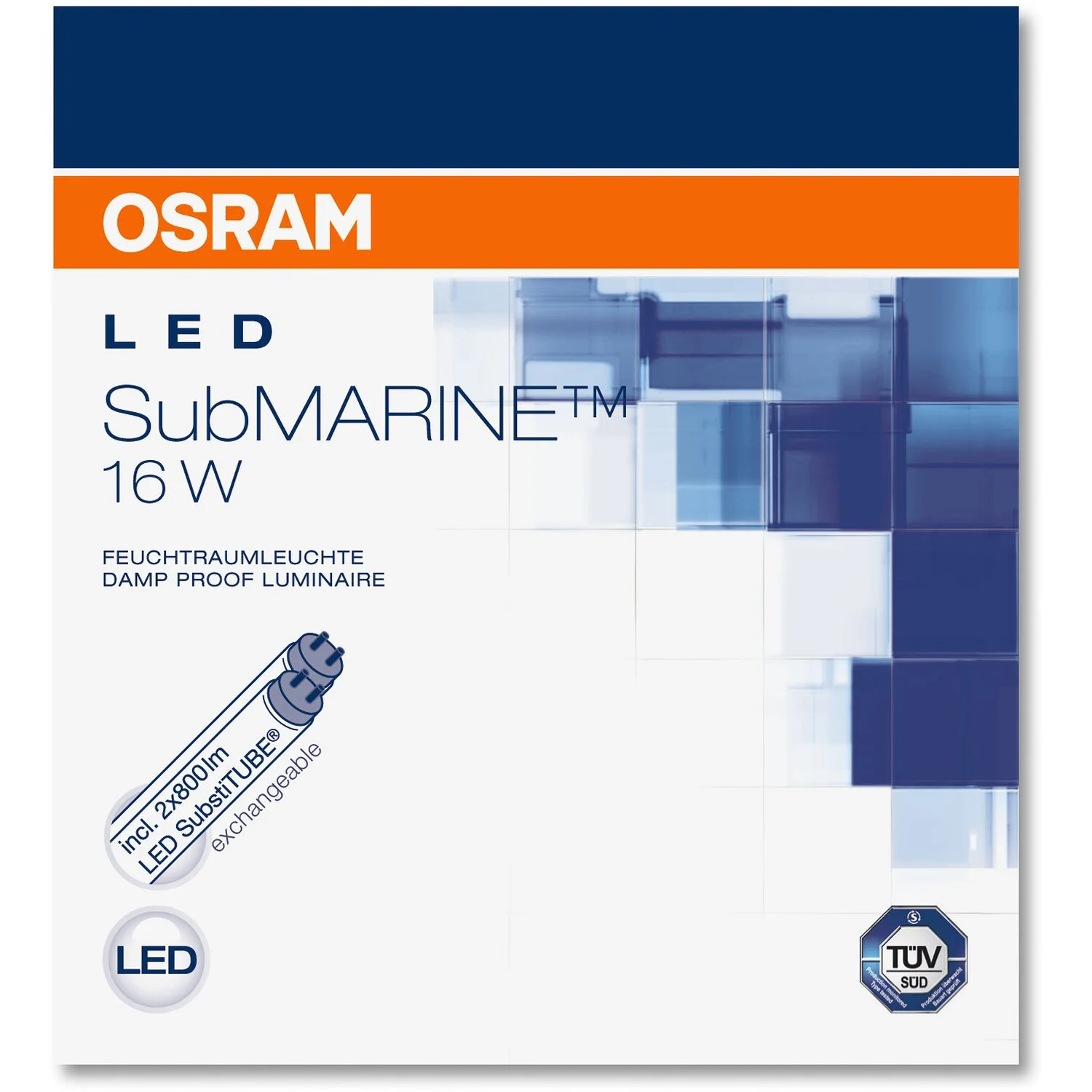Die Ledvance LED-Feuchtraumleuchte Submarine ist im Innenbereich einsetzbar und eignet sich als Keller-, Garagen- oder Werkstattleuchte. Sie bietet optimalen elektrischen Schutz dank zweier Sicherungselemente und ist quecksilberfrei sowie RoHS-konform. Ihr Energieersparnis gegenüber T8-Leuchtstofflampen mit KVG (Konventionellem Vorschaltgerät) beträgt bis zu 65 %. Zudem überzeugt sie durch ihre lange Lebensdauer sowie eine gute und gleichmässige Ausleuchtung. Der Farbwiedergabeindex Ra beträgt >= 80. Dank Schutzart IP65 ist die Leuchte staubdicht und geschützt gegen Strahlwasser. Des Weiteren besitzt sie eine seitliche PG-Kabelverschraubung und ein robustes Gehäuse aus Polycarbonat, welches feuer- und entzündungsbeständig ist (gemäss EN 60598-1).