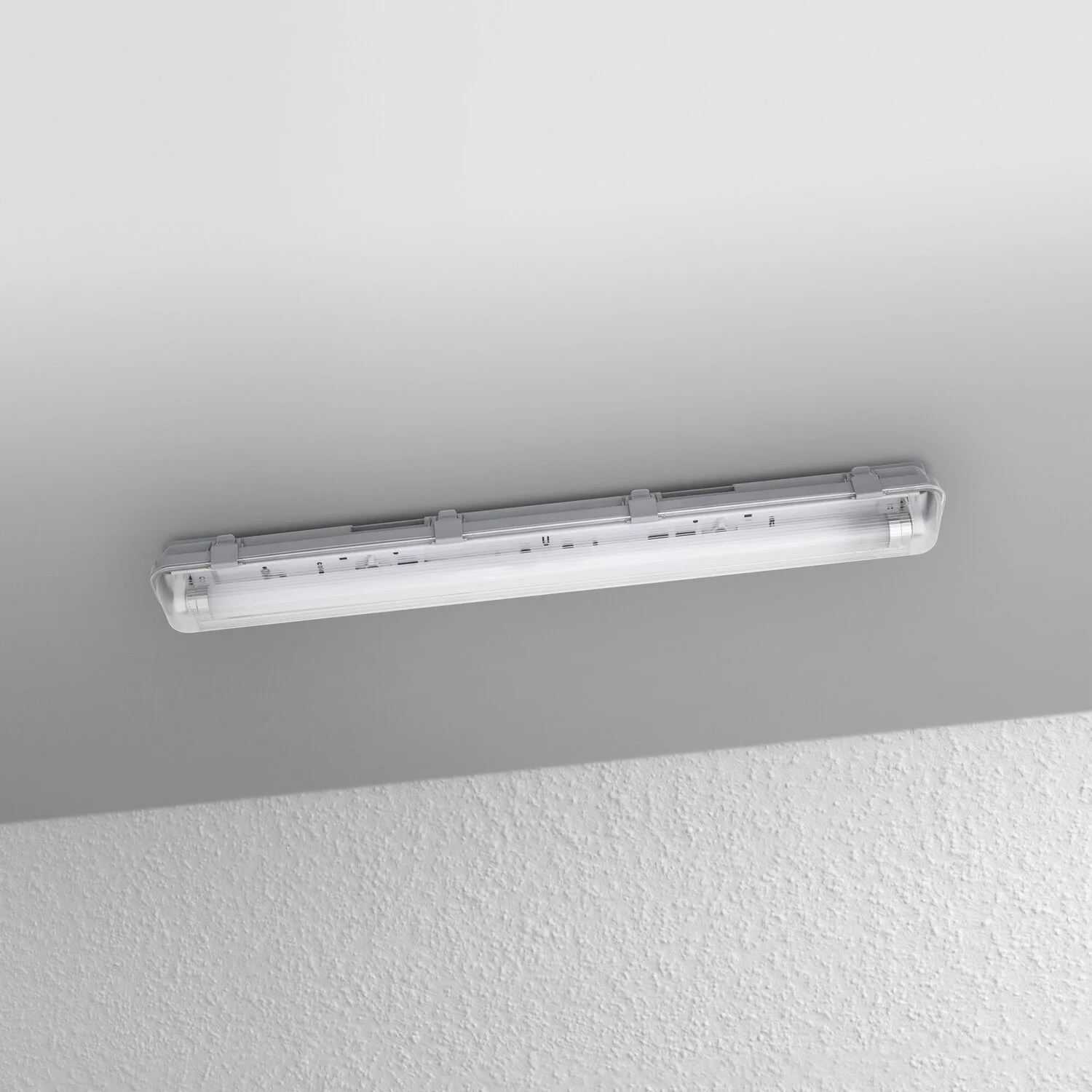 Die Ledvance LED-Feuchtraumleuchte Submarine ist im Innenbereich einsetzbar und eignet sich als Keller-, Garagen- oder Werkstattleuchte. Sie bietet optimalen elektrischen Schutz dank zweier Sicherungselemente und ist quecksilberfrei sowie RoHS-konform. Ihr Energieersparnis gegenüber T8-Leuchtstofflampen mit KVG (Konventionellem Vorschaltgerät) beträgt bis zu 65 %. Zudem überzeugt sie durch ihre lange Lebensdauer sowie eine gute und gleichmässige Ausleuchtung. Der Farbwiedergabeindex Ra beträgt >= 80. Dank Schutzart IP65 ist die Leuchte staubdicht und geschützt gegen Strahlwasser. Des Weiteren besitzt sie eine seitliche PG-Kabelverschraubung und ein robustes Gehäuse aus Polycarbonat, welches feuer- und entzündungsbeständig ist (gemäss EN 60598-1).