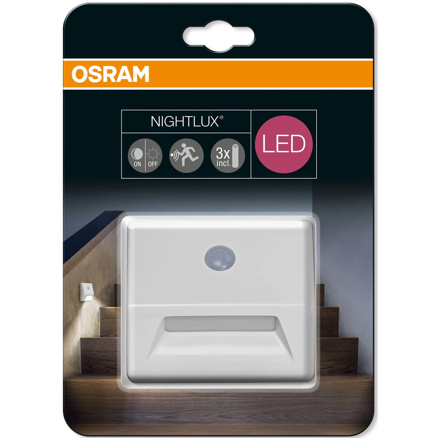 Bei der Ledvance Nightlux Stair handelt es sich um eine energieeffiziente mobile LED Aussenleuchte mit Tag-Nacht- und Bewegungssensor für die bedarfsgerechte Beleuchtung von Treppen und Fluren. Besonders die Lichtausstrahlung nach unten macht sie zur Ausleuchtung des Bodenbereichs geeignet. Mittels eingebautem Schalter kann die Nightlux Stair zwischen Dauer-Ein, Dauer-Aus und automatischem Betrieb umgeschaltet werden. Die Ledvance Nightlux Stair eignet sich dank Schutzart IP54 für Anwendungen im Innen- und Aussenbereich. Der Batteriebetrieb ermöglich den Einsatz auch dort, wo kein Stromanschluss verfügbar ist. Die benötigten Batterien sowie das vollständige Montage- und Anschlusszubehör sind im Lieferumfang enthalten. Die Installation erfolgt schnell und einfach mittels Klebestreifen oder Schrauben.