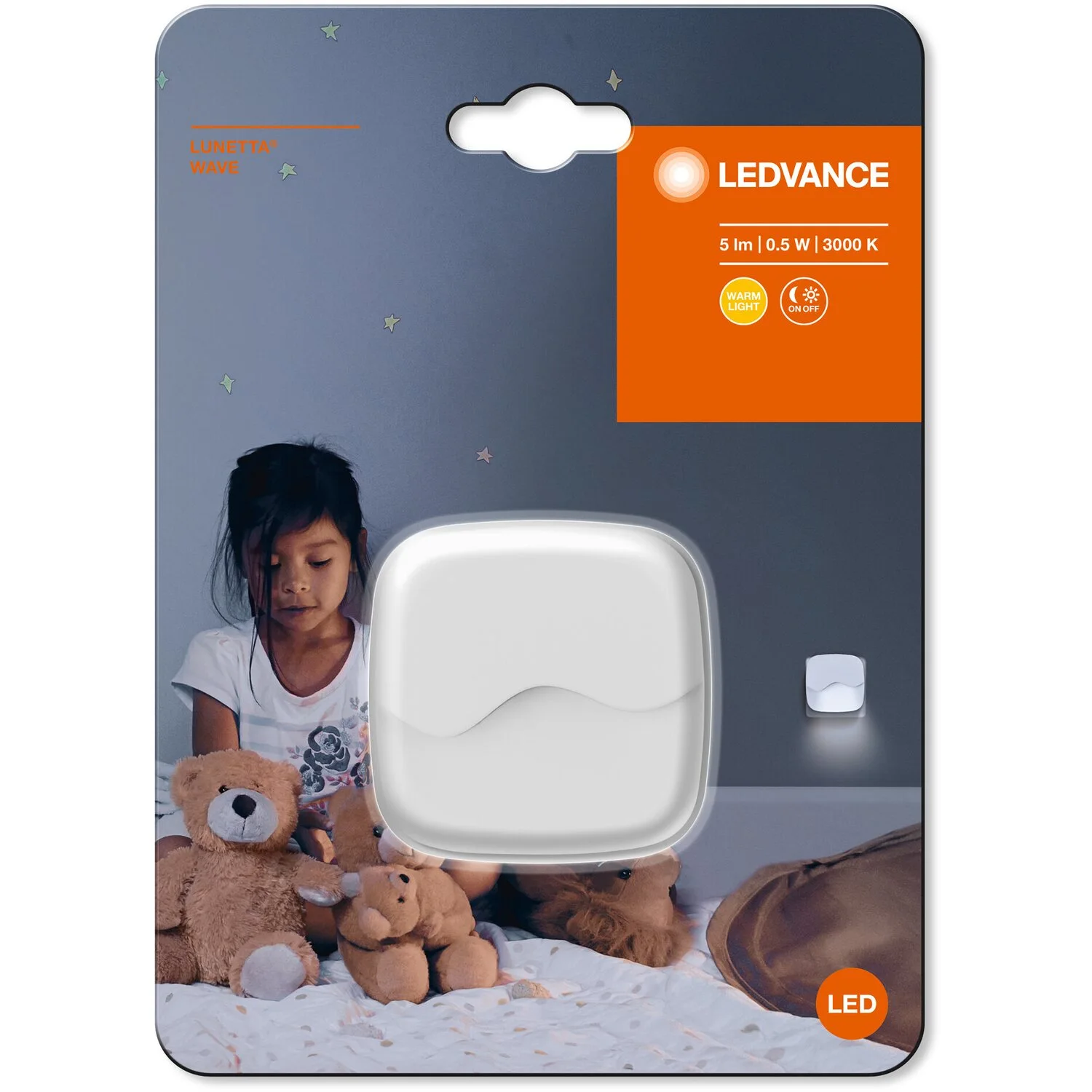 Das Steckdosen-Nachtlicht Lunetta von Ledvance eignet sich als dekorative Wohnbeleuchtung für das Kinderschlafzimmer. Es ist mit einem integrierten Tag- und Nacht-Sensor ausgestattet. Das Steckdosen-Nachtlicht verbreitet ein warmweisses Licht, das sich, abhängig vom Tageslicht, automatisch ein- und ausschaltet. Das Nachtlicht Lunetta überzeugt mit einem attraktiven und funktionalen Design. Die Masse sind (HxBxT) 6 x 6 x 5,5 cm.