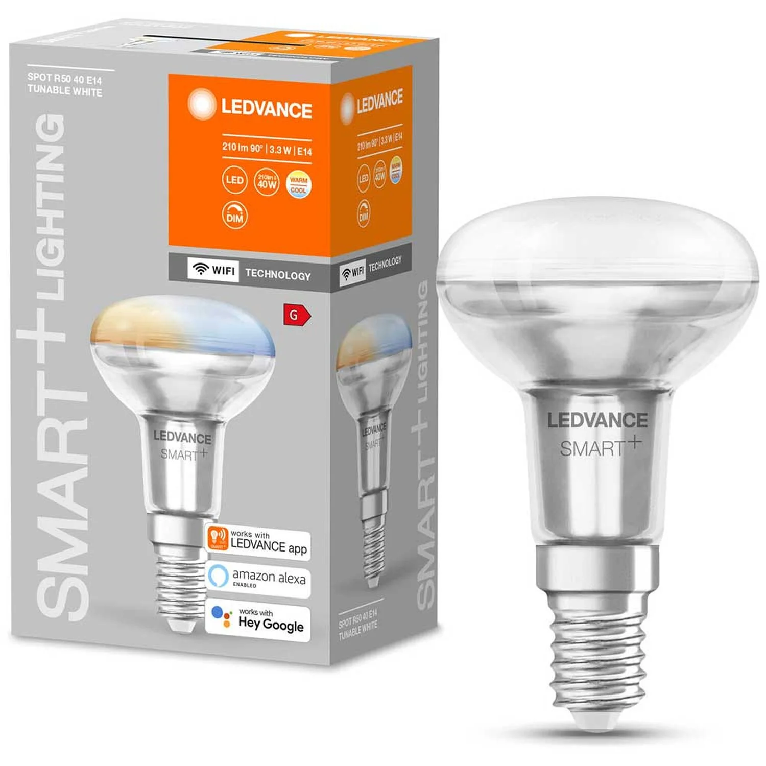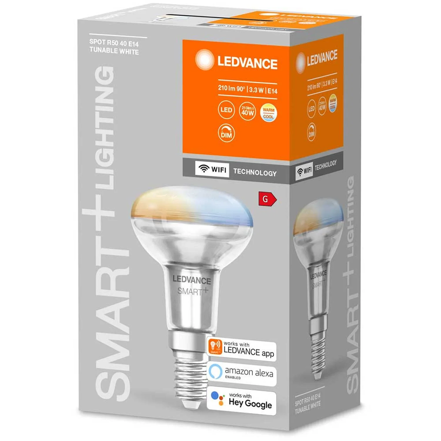 Die Reflektorformlampe Spot Concentra mit WiFi-Technologie ist über die Smart+ WiFi-App von Ledvance (mit mindestens Android 4.4 oder iOS 9.0) steuerbar. Es ist auch eine Steuerung über Google Assistant oder Amazon Alexa möglich. Die Lichtfarbe ist über Tunable White von Warmweiss bis Kaltweiss (2’700 K bis 6’500 K) einstellbar. Die Lampe ist dimmbar und hat eine Lebensdauer von bis zu 20’000 h. Ausserdem enthält sie kein Quecksilber. Installation und Nutzung sind ganz einfach. Sie ist als Allgemeinbeleuchtung für Wohn- und Gewerberäume (Hotels, Bars, Boutiquen usw.) geeignet. Eine Anwendung im Aussenbereich ist nur in geeigneten Leuchten zu empfehlen.