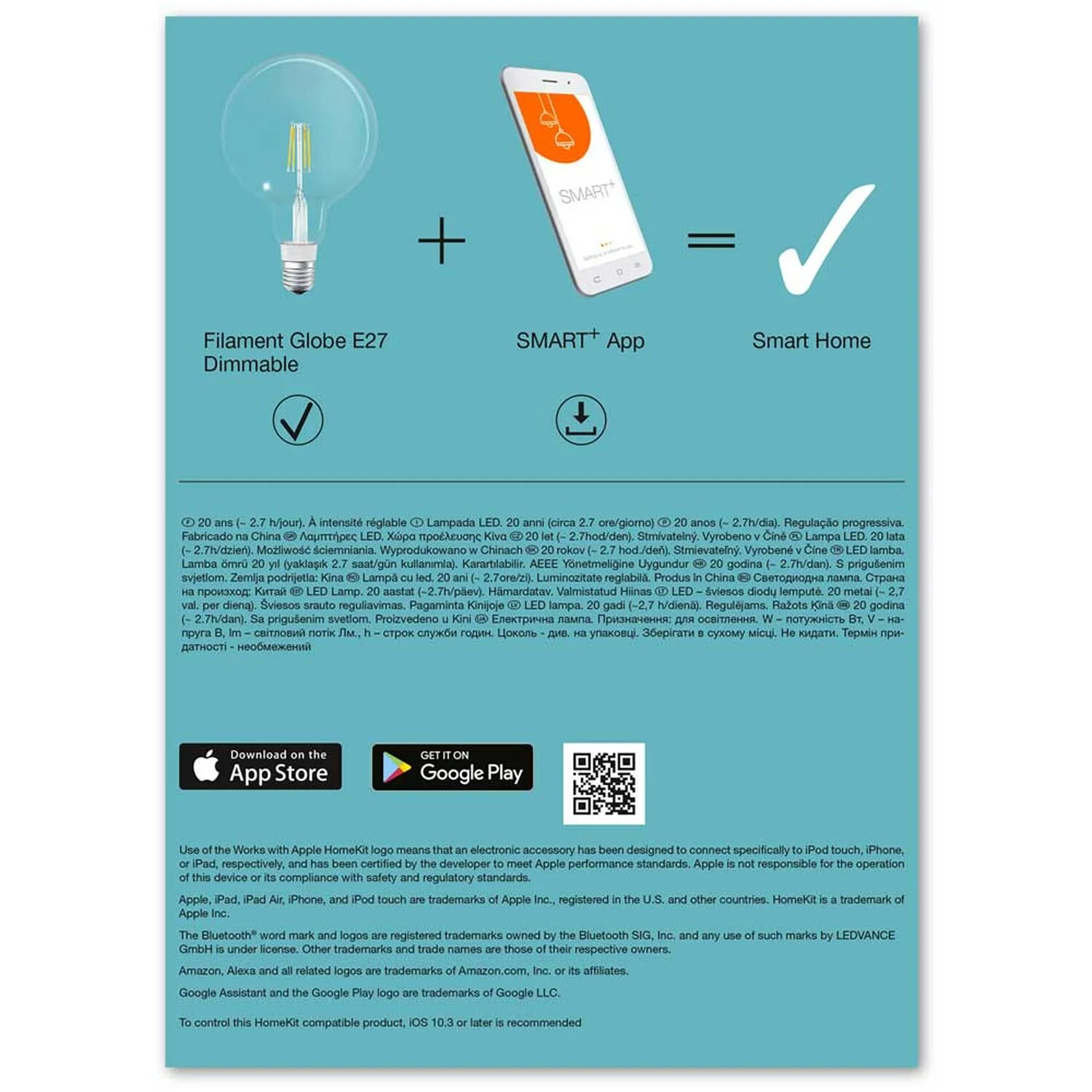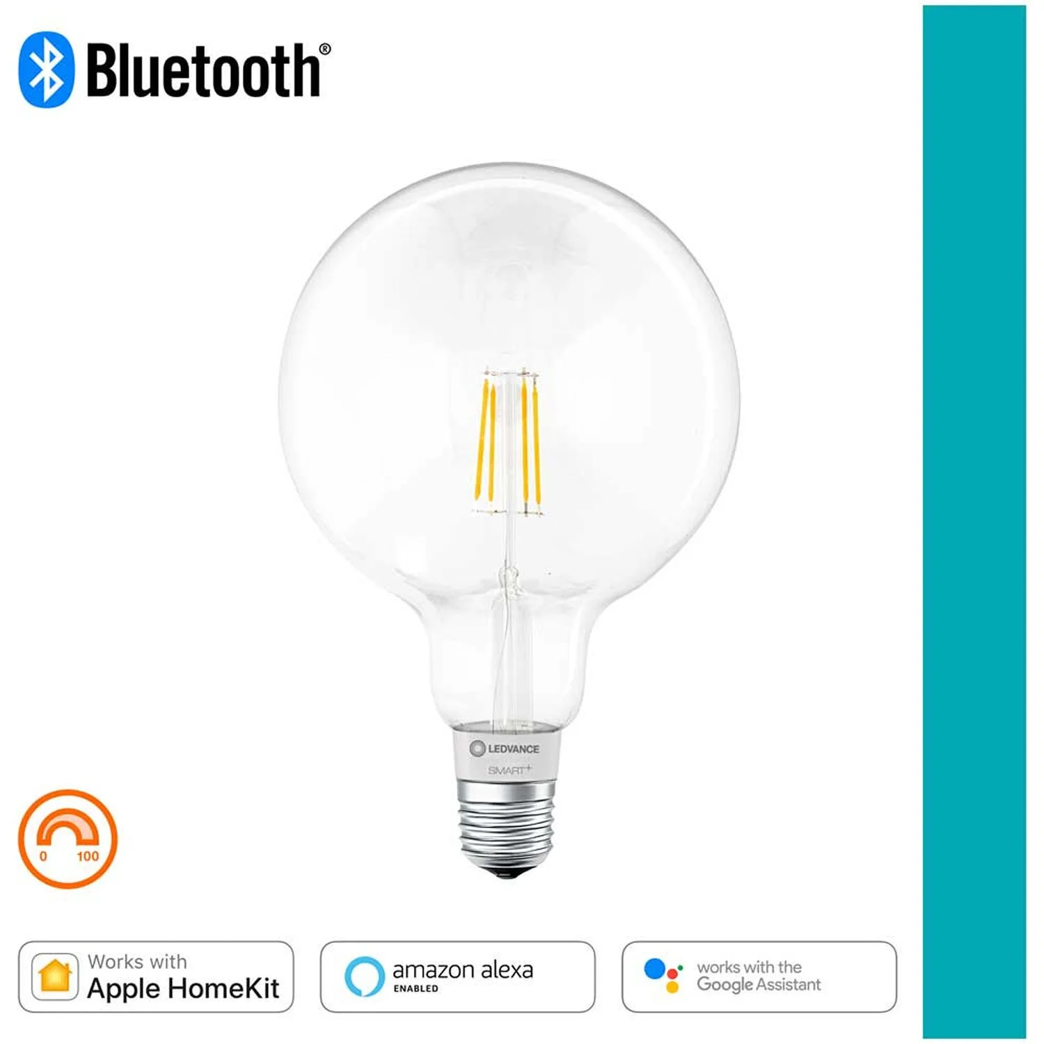 Diese smarte Ledvance LED-Lampe in Globeform ist ein sehr sparsames Retrofit LED Leuchtmittel für E27 Fassungen. Mit Ihrer Energieeffizienzklasse E, einer Schaltfestigkeit von 100’000 Schaltzyklen und einer Durchschnittlichen Lebensdauer von 15’000 Stunden schonen Sie gleichzeitig die Umwelt und Ihren Geldbeutel. Der Lichtstrom von 650 lm, die warmweisse Lichtfarbe und ihre Dimmbarkeit entsprechen dabei weitgehend denen einer herkömmlichen 50 W Glühlampe. Die Ledvance LED-Lampe verwendet Bluetooth Technologie und ist kompatibel mit Amazon Alexa, Apple HomeKit und Google Assistant. Für den vollen Funktionsumfang ist ein mobiles Device (z.B. Smartphone, Tablet o.ä.) erforderlich. Fragen Sie im Zweifel Ihren OBI-Kundenberater und lesen Sie die Packungsbeilage.