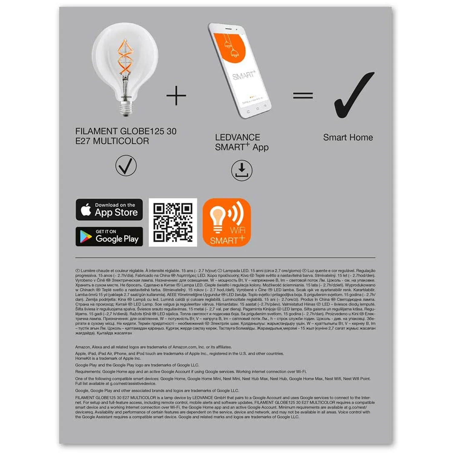 Es ist steuerbar über die Ledvance Smart+ WiFi App (mit mindestens Android 4.4 oder iOS 9.0) sowie über den Google Assistant oder Amazon Alexa.