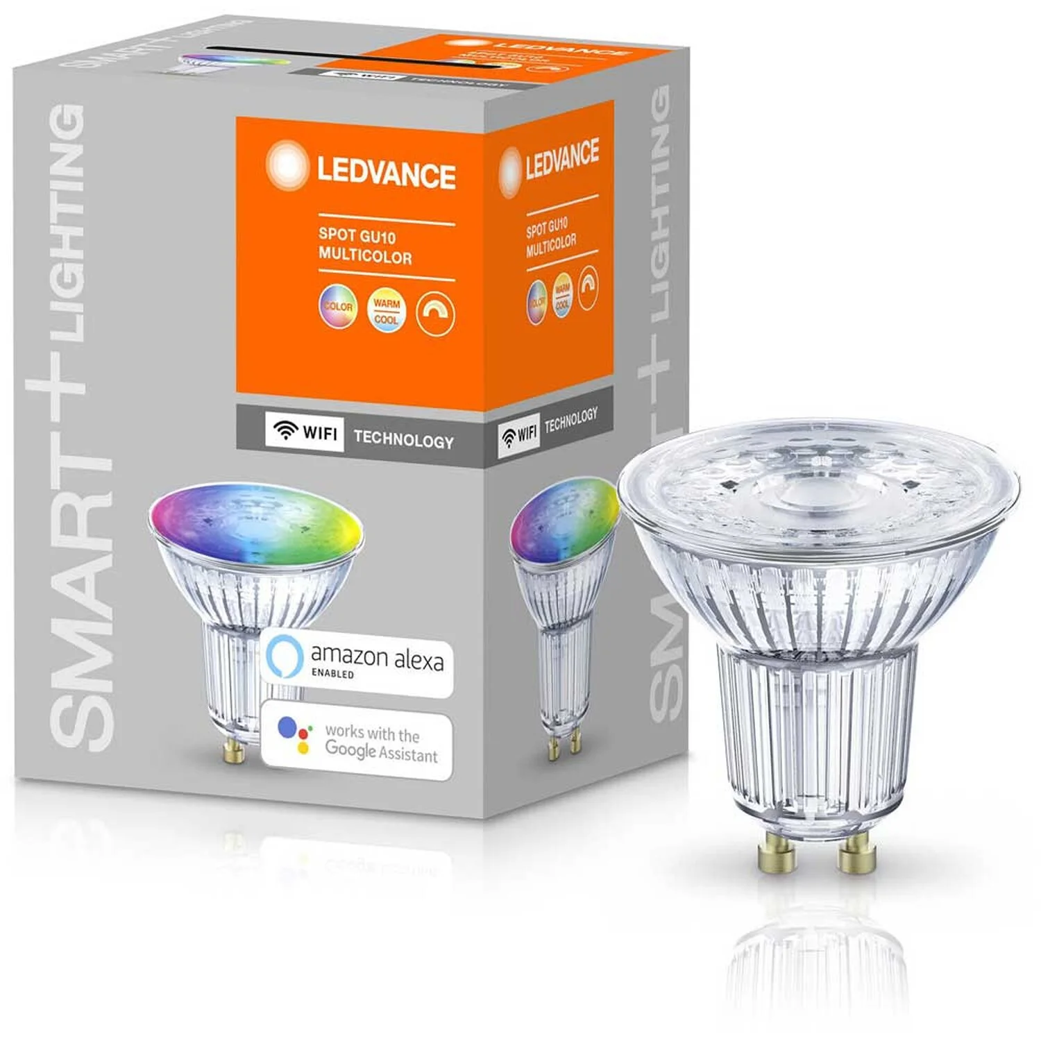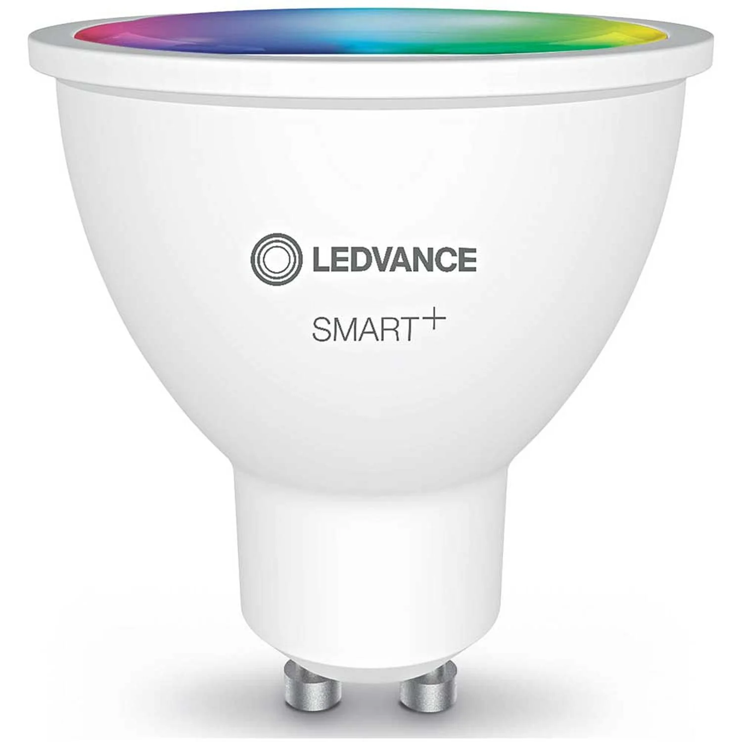 Das Ledvance LED-Leuchtmittel Reflektor GU10 WiFi RGBW / 5 W / 350 lm ist eine smarte WiFi LED-Lampe in klassischer Reflektorform mit intelligenter kabelloser Steuerungstechnik. Dank innovativer LED-Technologie zeichnet sich das Leuchtmittel durch lange Lebensdauer und hohe Energieeffizienz aus. Die dimmbare LED-Reflektorlampe eignet sich perfekt für die smarte Allgemeinbeleuchtung im Innenbereich.